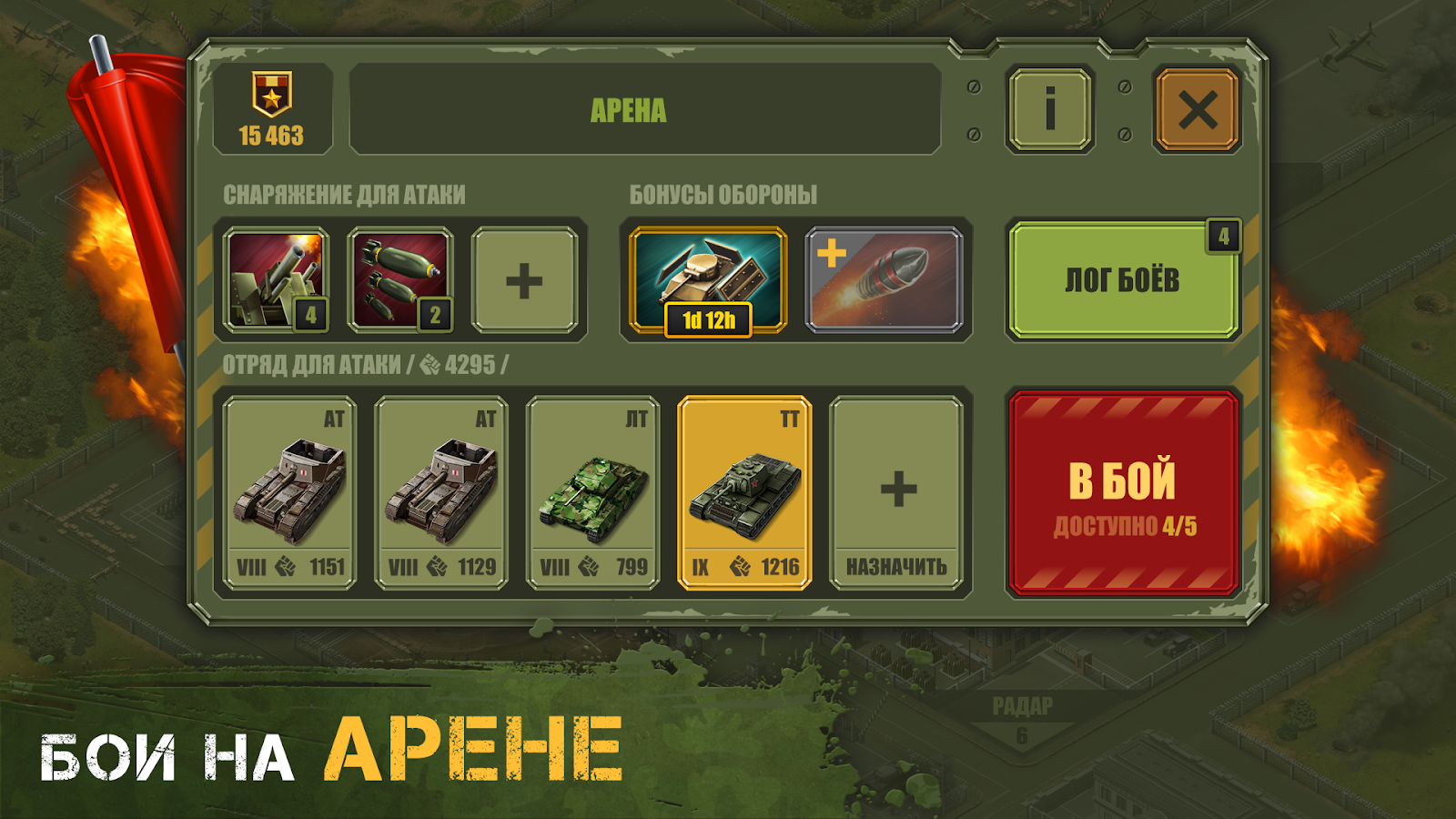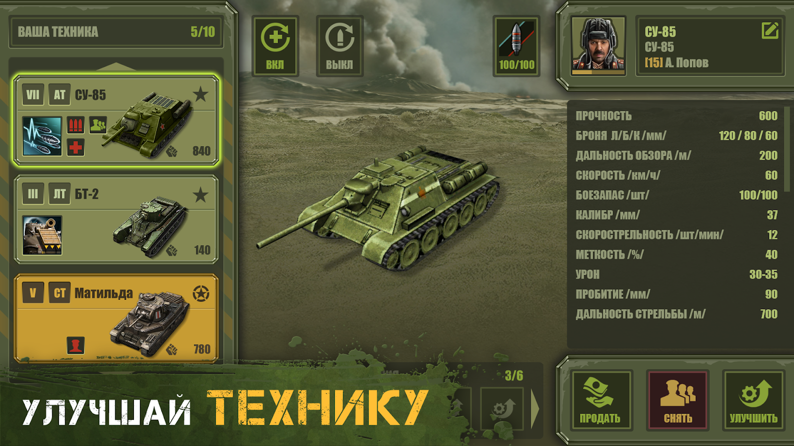 Соберите непобедимый отряд и оснастите их лучшими экипажами. Придумайте выигрышную стратегию и бросьте вызов другим игрокам! Развивайте инфраструктуру и добывайте компоненты. Заряжайте пушки и превратите врагов в гору металлолома!