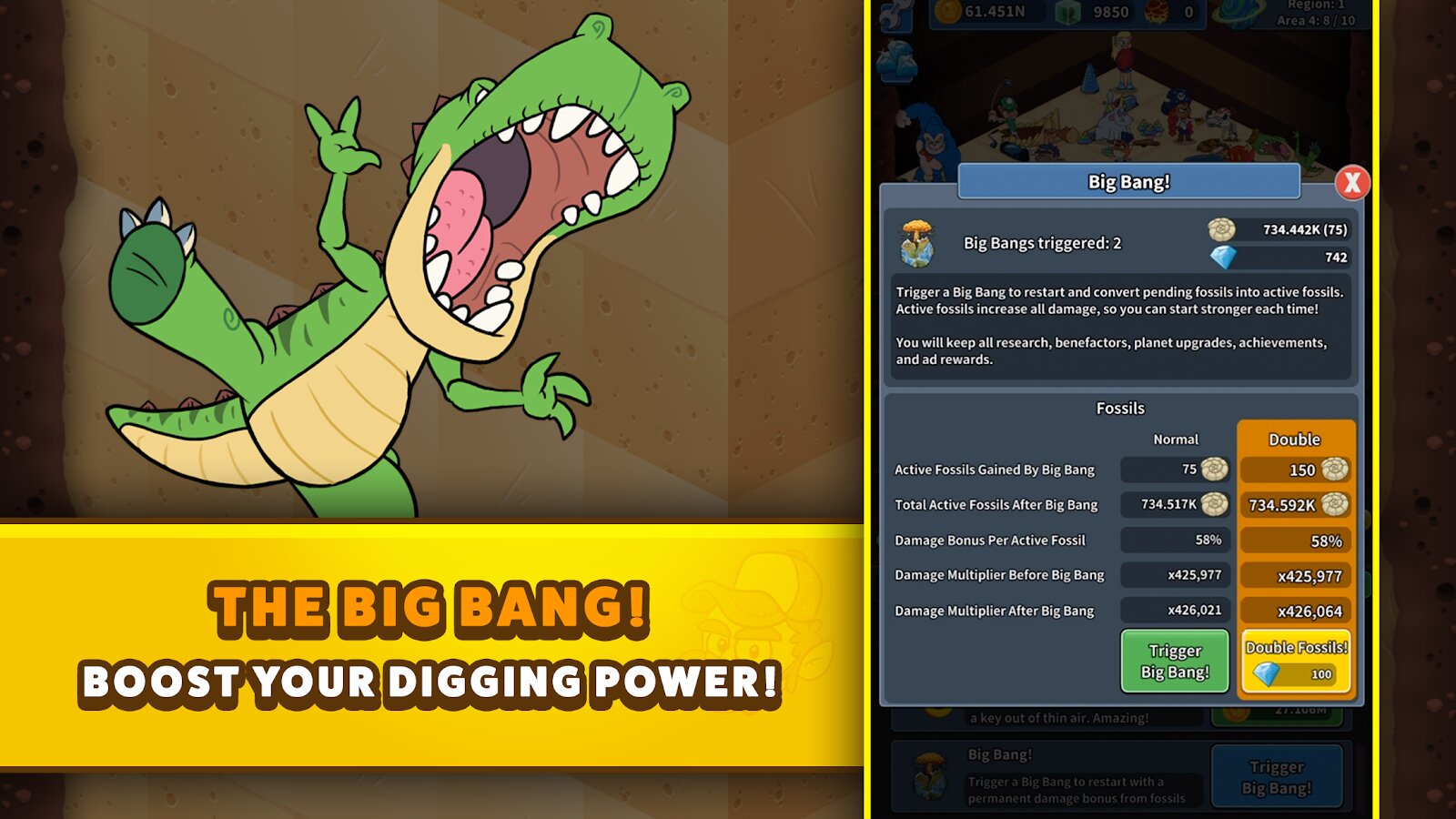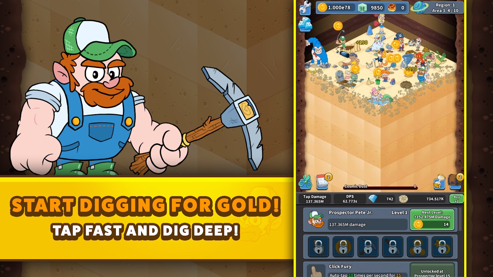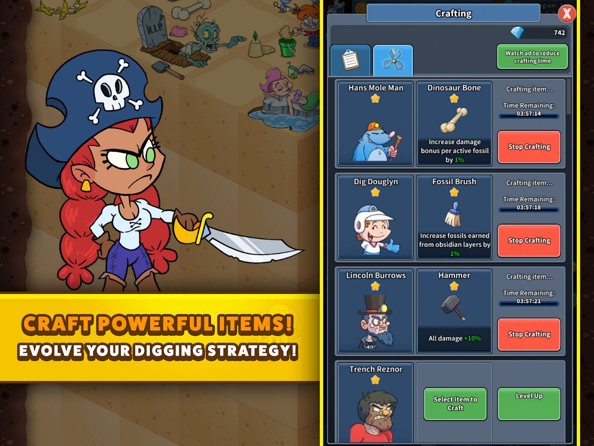 В игре Tap Tap Dig 2: Idle Mine Sim вас ждёт увлекательный геймплей, интересные герои и удобное управление. Участвуйте в грандиозных раскопках вместе с весьма неожиданными персонажами (зомби, единорогов, пиратов и прочих). Копайте вглубь до ядра планеты, именно там вас ждут самые щедрые награды. В этой игре вам точно не придётся скучать.