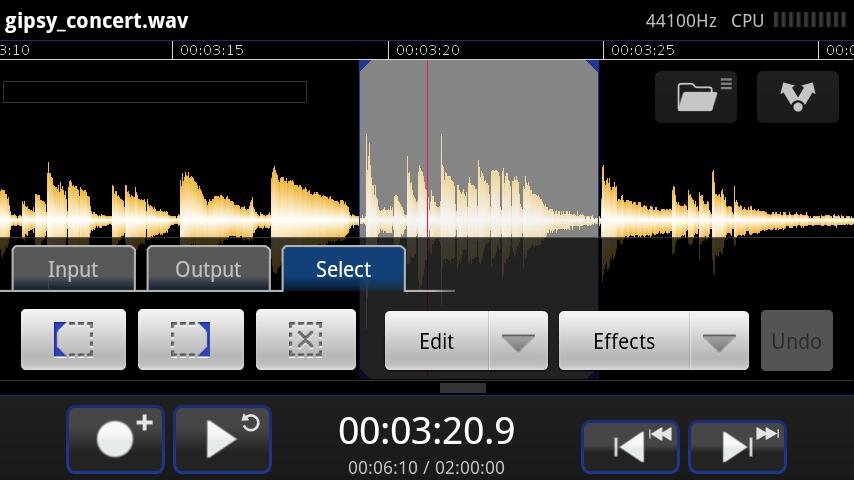- Выбор участков для удаления/вырезания/отключения звука части трека с поддержкой отмены