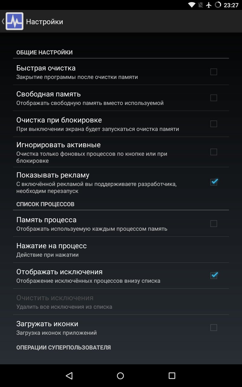 - Принудительная остановка процессов (Android 3+)