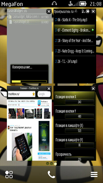 Tasks widget — виджет для belle, который добавляет панели задач на рабочем столе в стиле OS Meego.