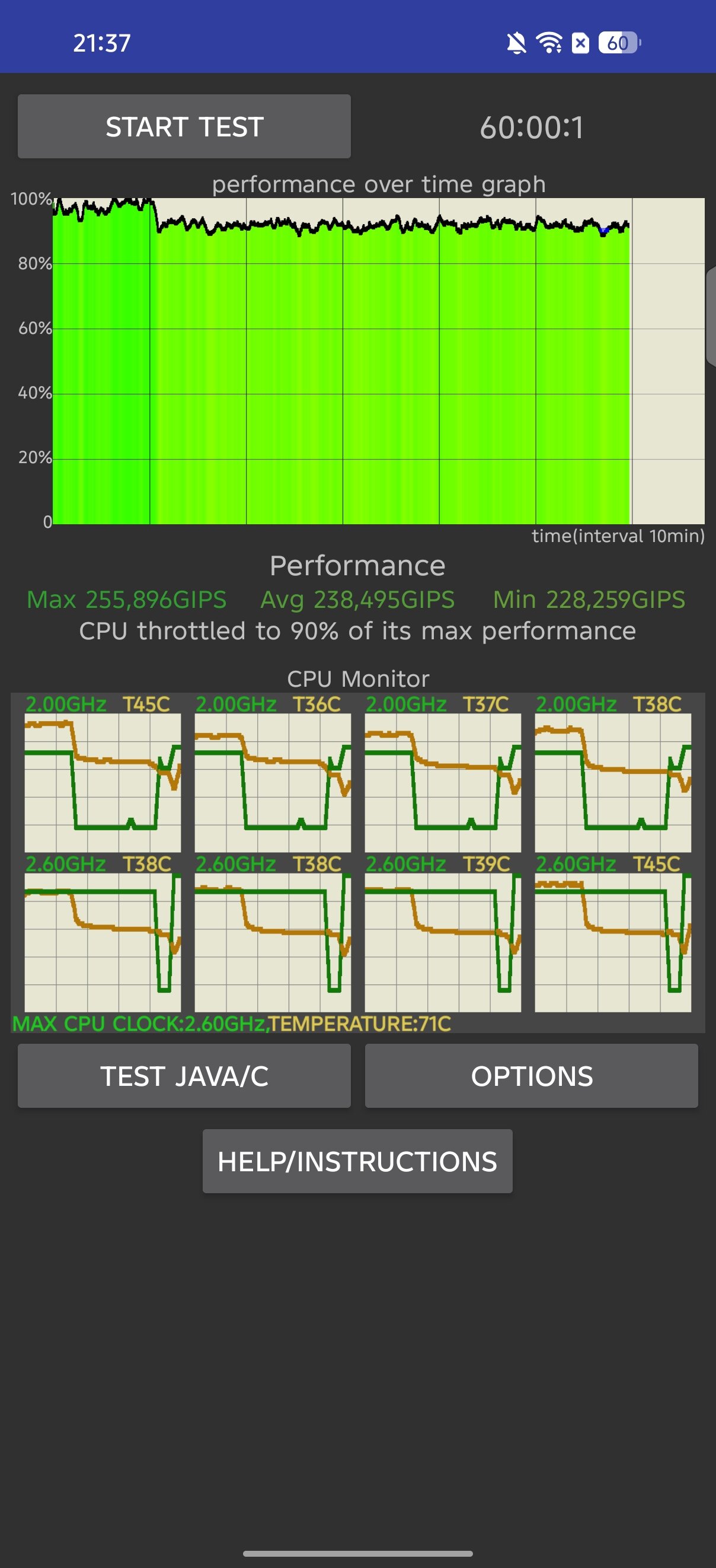 Установленная здесь система охлаждения на 12 725 мм², способная похвастаться 10-слойной конструкцией и испарительной камерой на 3205 мм², отрабатывает на отлично, не позволяя процессору сбросить более 10% производительности под часовой пиковой нагрузкой стресс-теста. По графике просадок вообще нет.