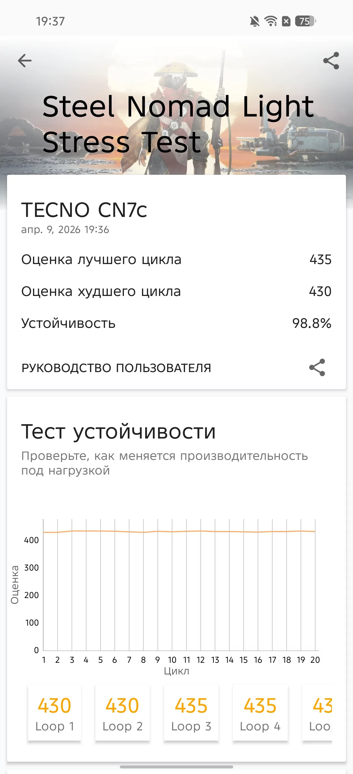 TECNO CAMON 50 Ultra 5G работает на базе Dimensity 7400 Ultimate от MediaTek. Это 4-нанометровый чип с графикой ARM Mali-G615 MC2 и процессором с четырьмя производительными ядрами Cortex-A78 на 2,6 ГГц и четырьмя экономными ядрами Cortex-A55 на 2,0 ГГц. Он работает в связке с памятью на 8/256 ГБ, 12/256 ГБ, 8/512 ГБ или 12/512 ГБ — производитель не раскрывает стандарты ОЗУ и ПЗУ. Я обратил внимание на необычную для 2026 года комбинацию из 8 ГБ оперативной памяти и 512 ГБ хранилища, такого давно не видел. К слову, оперативную память можно удвоить за счёт виртуальных гигабайт.