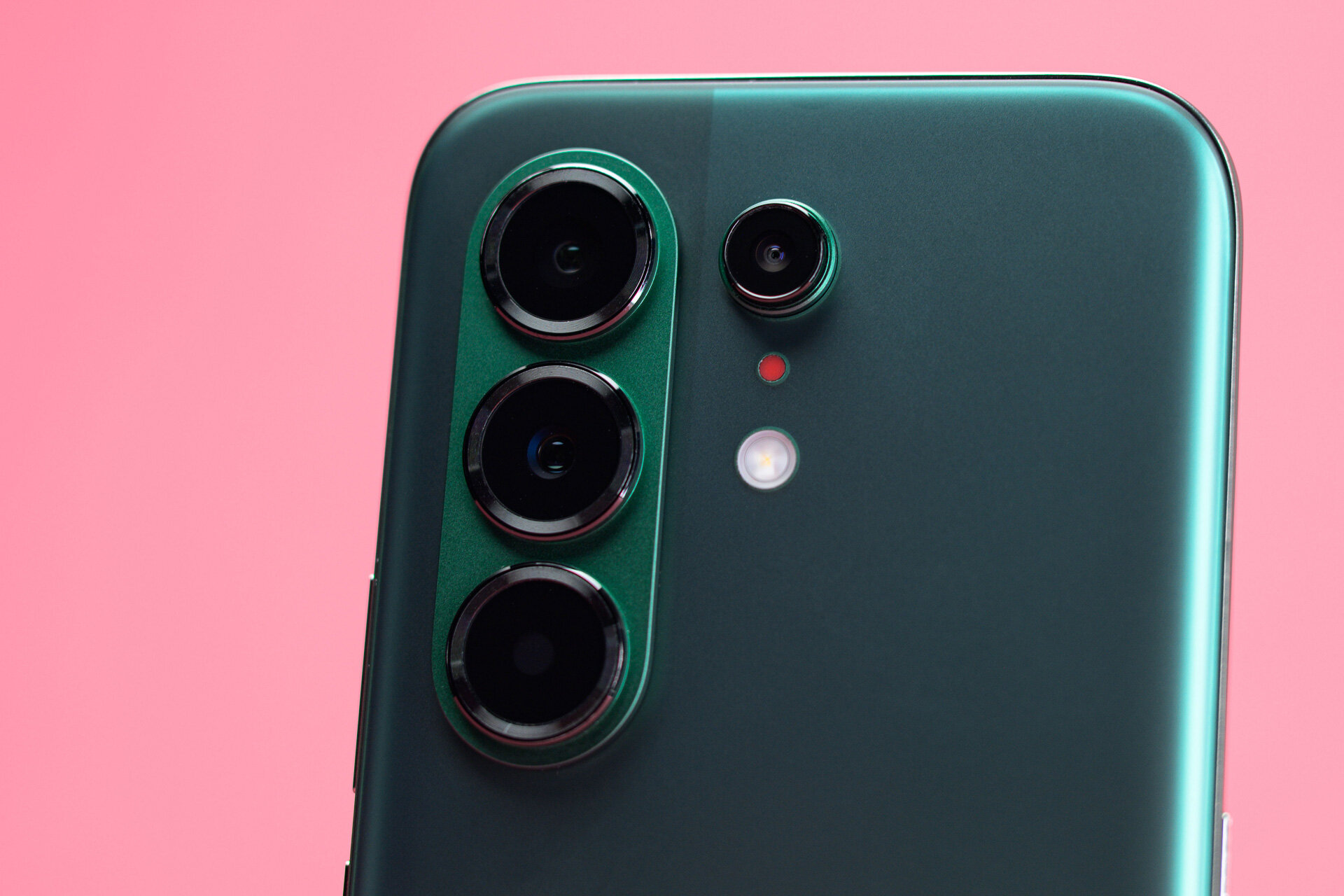 Лучше всего понять, что я имею в виду под «балансом между минимализмом и броскими привлекающими элементами», можно по дизайну задней крышки (у меня зелёная расцветка, но это относится ко всем). Блок камер визуально окружён более тёмным цветом, чем вся остальная панель, а справа от него расположен, среди прочего, красный светодиодный индикатор, лично у меня ассоциирующийся с запущенной видеосъёмкой — на мой вкус, выглядит интересно.