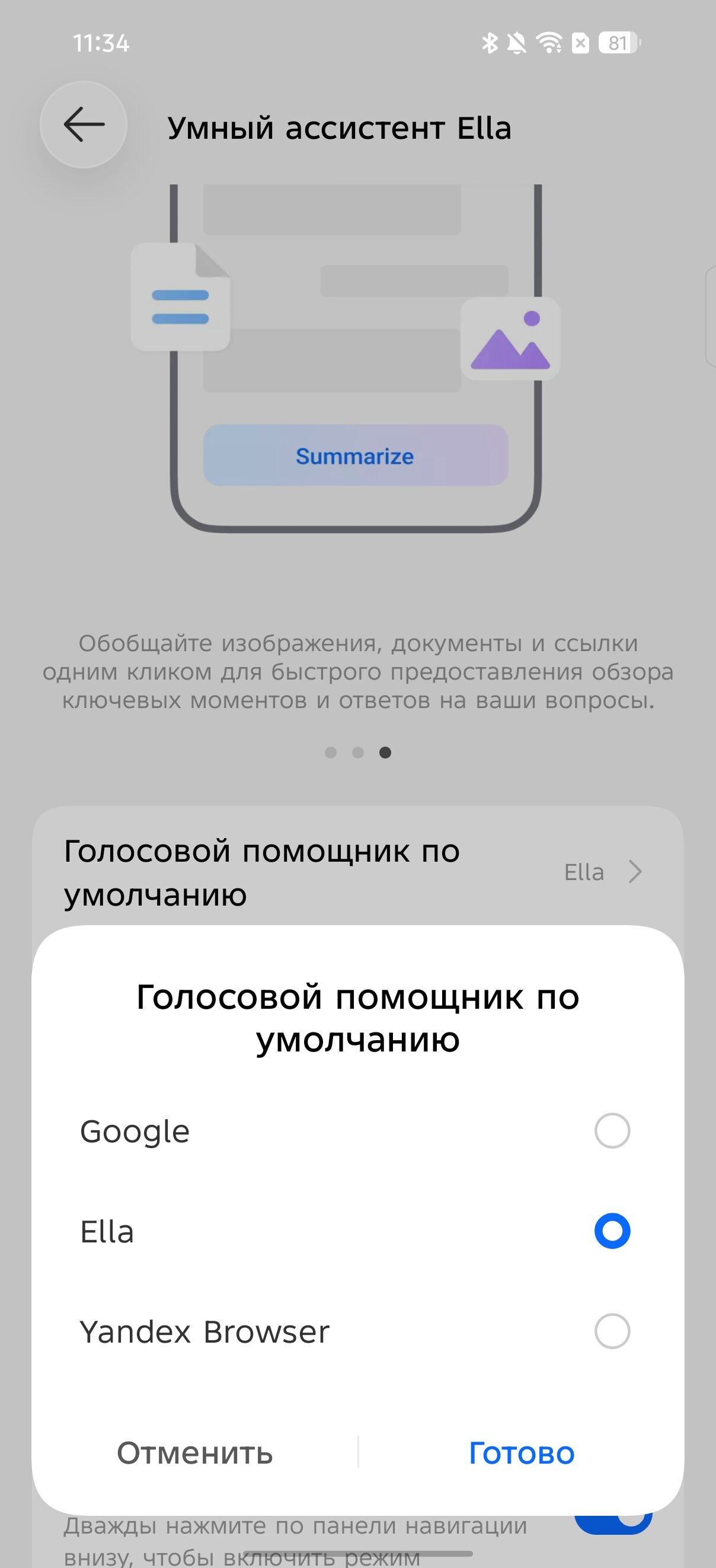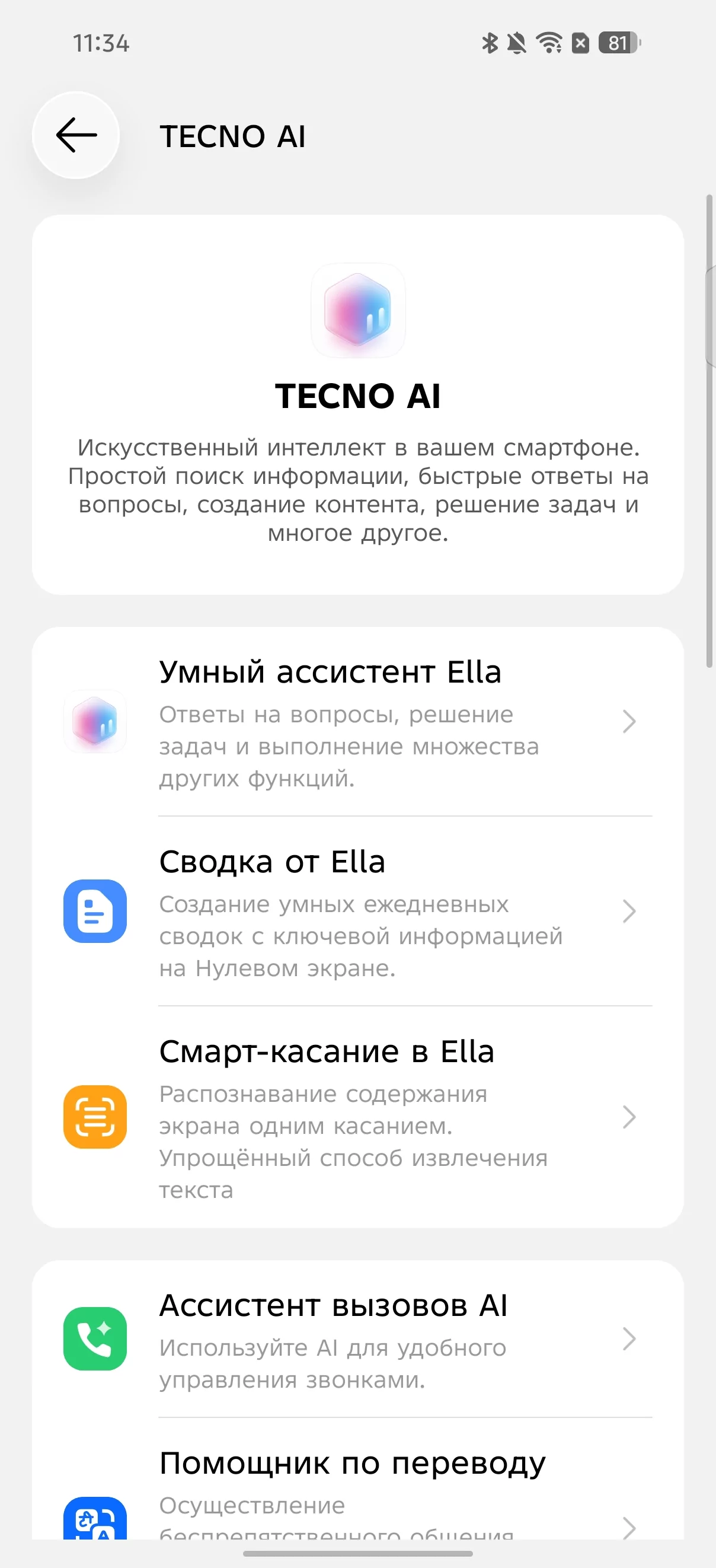 Также HiOS 16 пронизана полезными, и при этом простыми ИИ-инструментами, среди которых центральным элементом выступает фирменный виртуальный помощник Ella. Она интегрирована с сервисами Яндекса, где с помощью голосовых команд можно открыть нужные приложения: «Закажи такси» или «Найди самокат» — Яндекс Go, «Покажи кафе рядом» или «Построй маршрут» — Яндекс Карты, «Закажи пиццу» — Яндекс Еда, и многочисленные другие команды. Помимо этого, среди ИИ-опций можно выделить генератор видео, который «оживляет» фото, решение математических (и вообще каких угодно) задач по фото, а также функцию «Умные закладки». Последняя по нажатию кнопки действия на левой грани сохраняет то, что видно на экране в специальную базу знаний внутри приложения ассистента Ella. По сути, более простая и удобная замена сохранёнкам в «Избранное» или многочисленным скриншотам, чтобы не потерять ничего нужного.