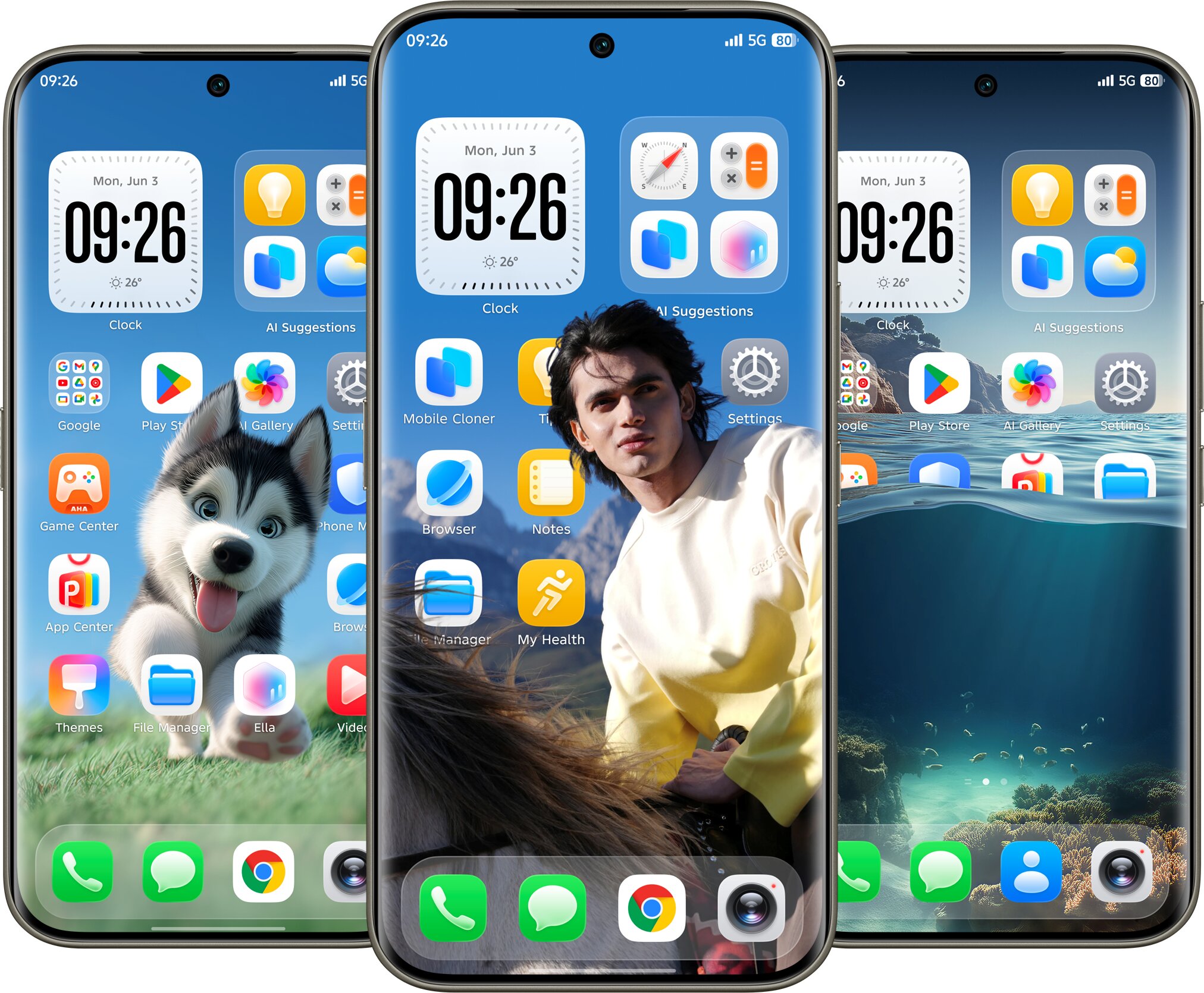 К оболочке у меня нет никаких претензий, она работает быстро и сделана современно, имея стеклянные элементы интерфейса и свежие заставки (и на рабочий стол, и на экран блокировки) с возможностью отделить передний объект картинки от фона, красиво интегрировав виджет часов.