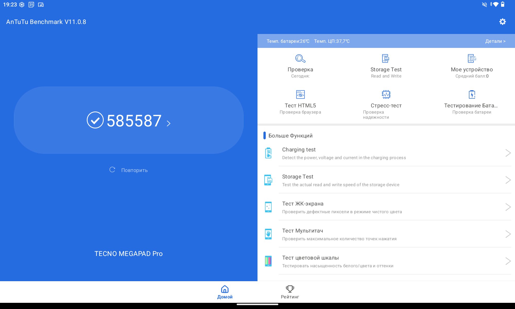 TECNO MEGAPAD Pro получил аккумулятор на 10 000 мА⋅ч — это привычное значение в планшетах с такой диагональю, поэтому мне было интересно узнать, на что батарея такого объёма способна конкретно в данном случае. Судя по всему, оптимизированная прошивка, экономный чипсет и сбалансированный экран сыграли своё дело — при сёрфинге интернета, просмотре соцсетей, нескольких сериях сериала и простеньких играх модель выдерживает 6-7 часов на средней яркости экрана, и это хороший показатель.