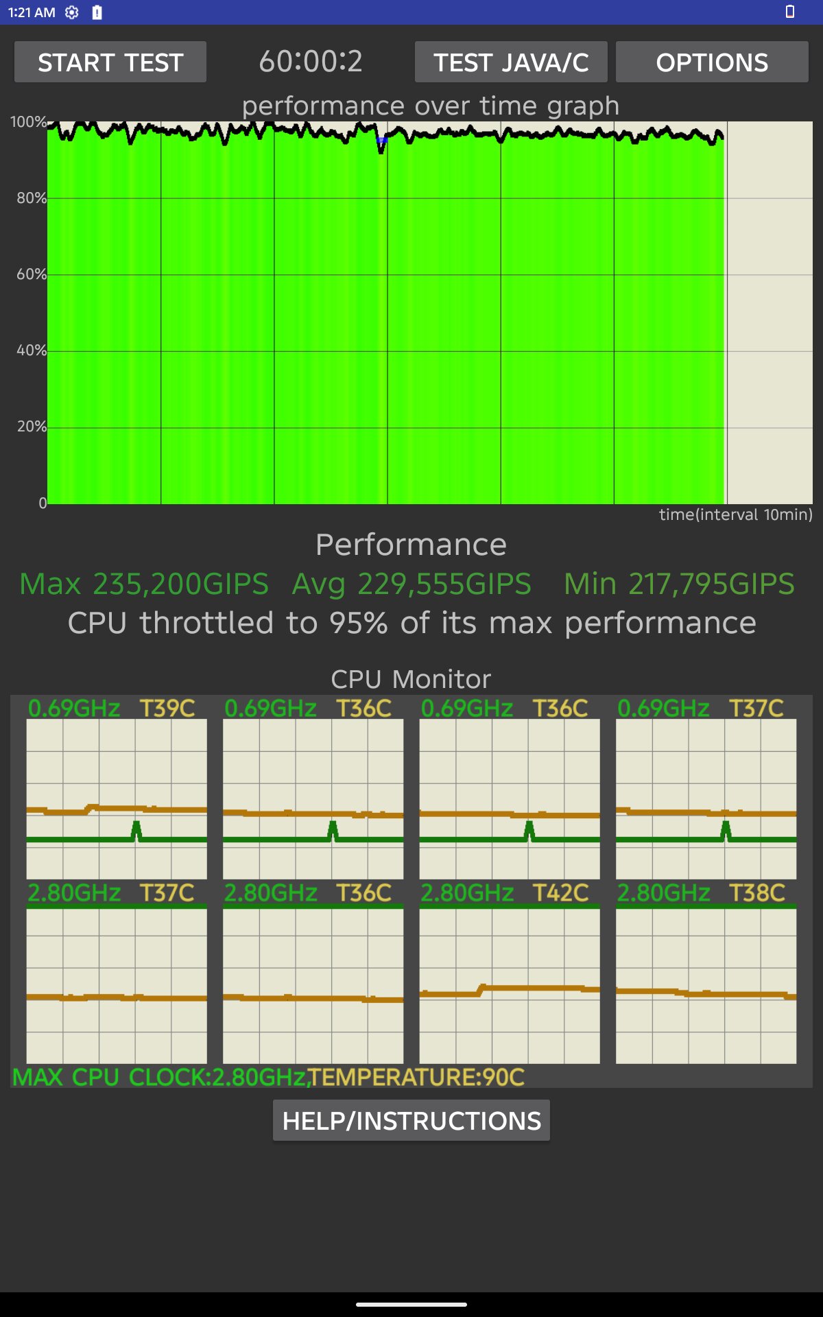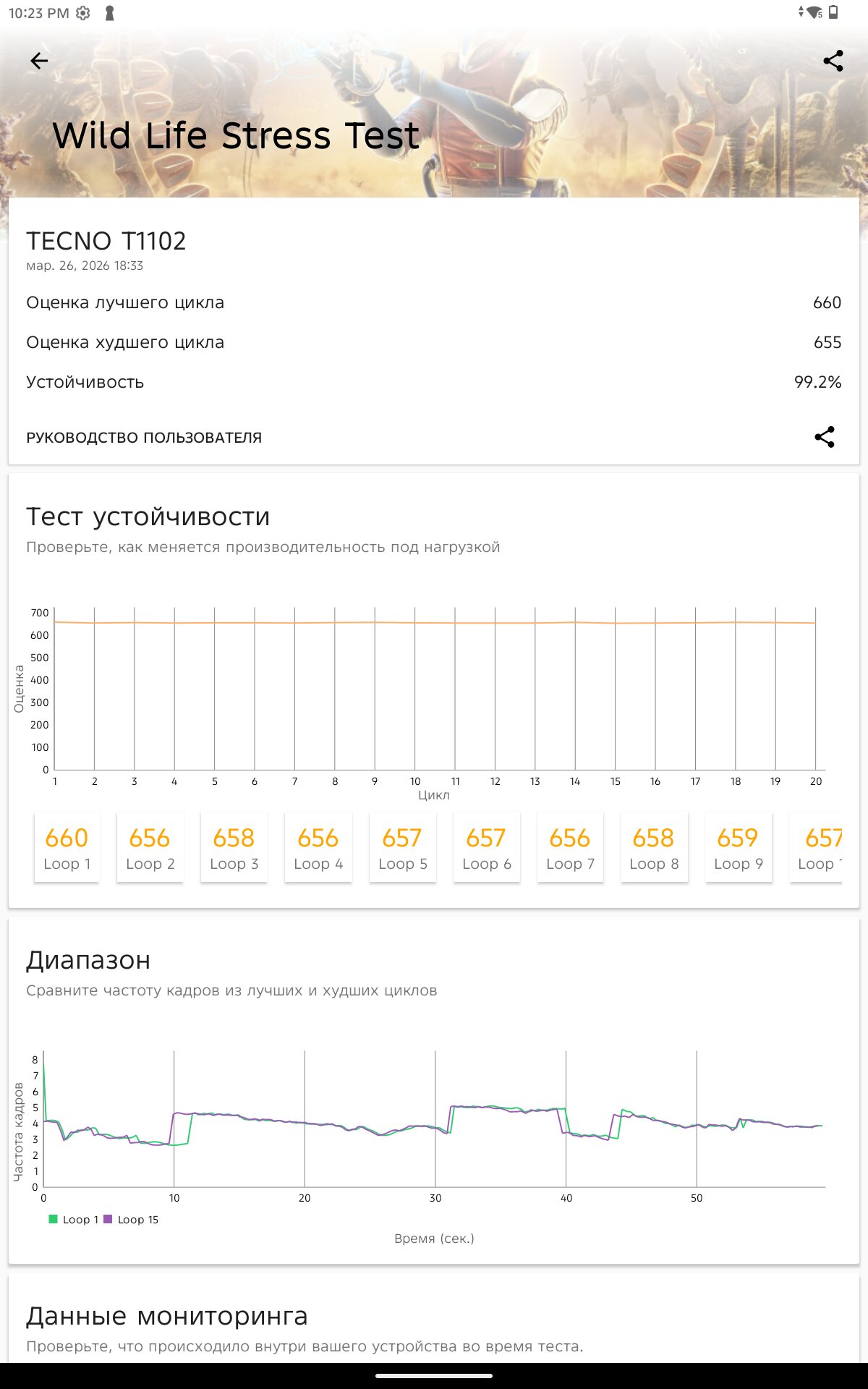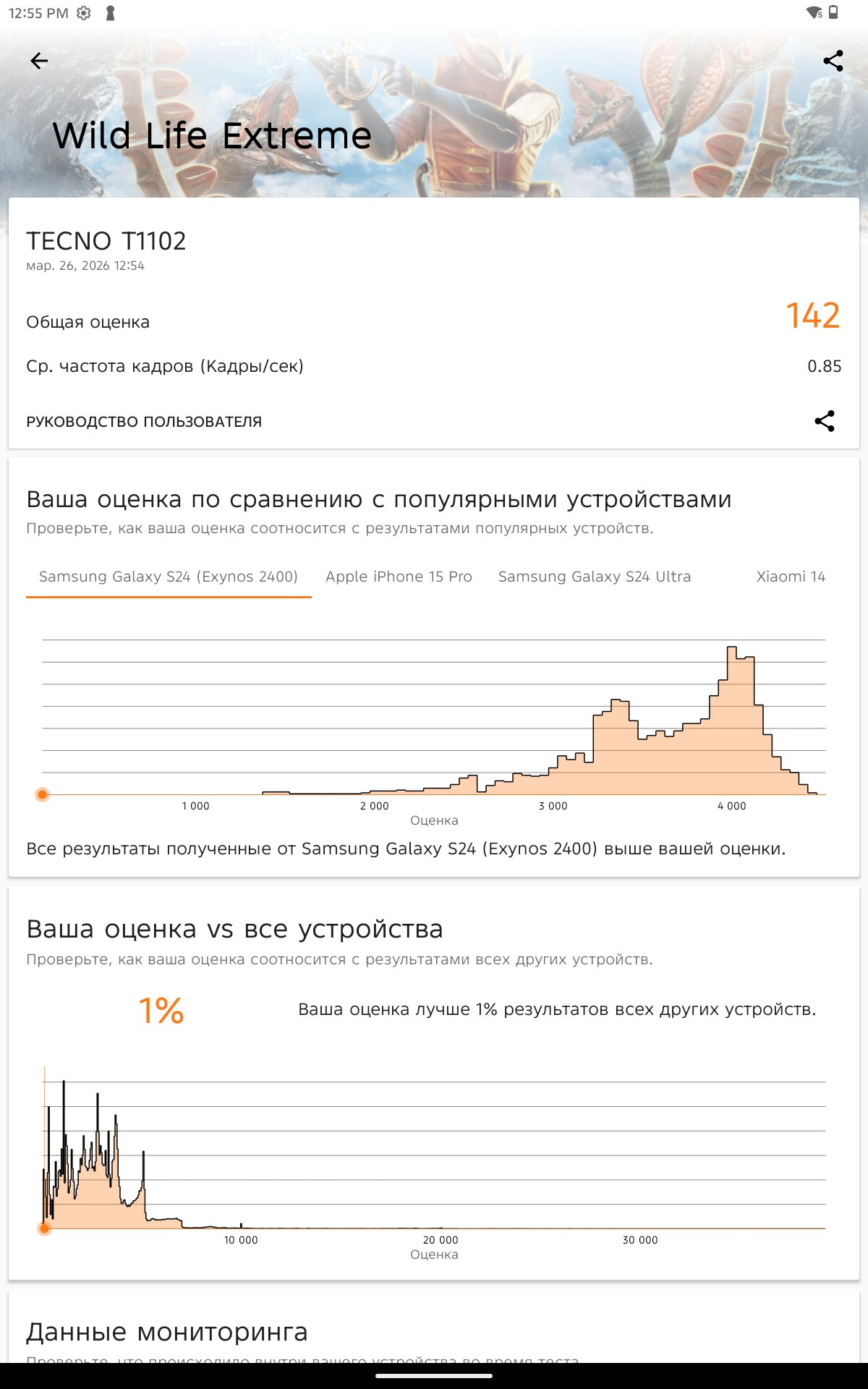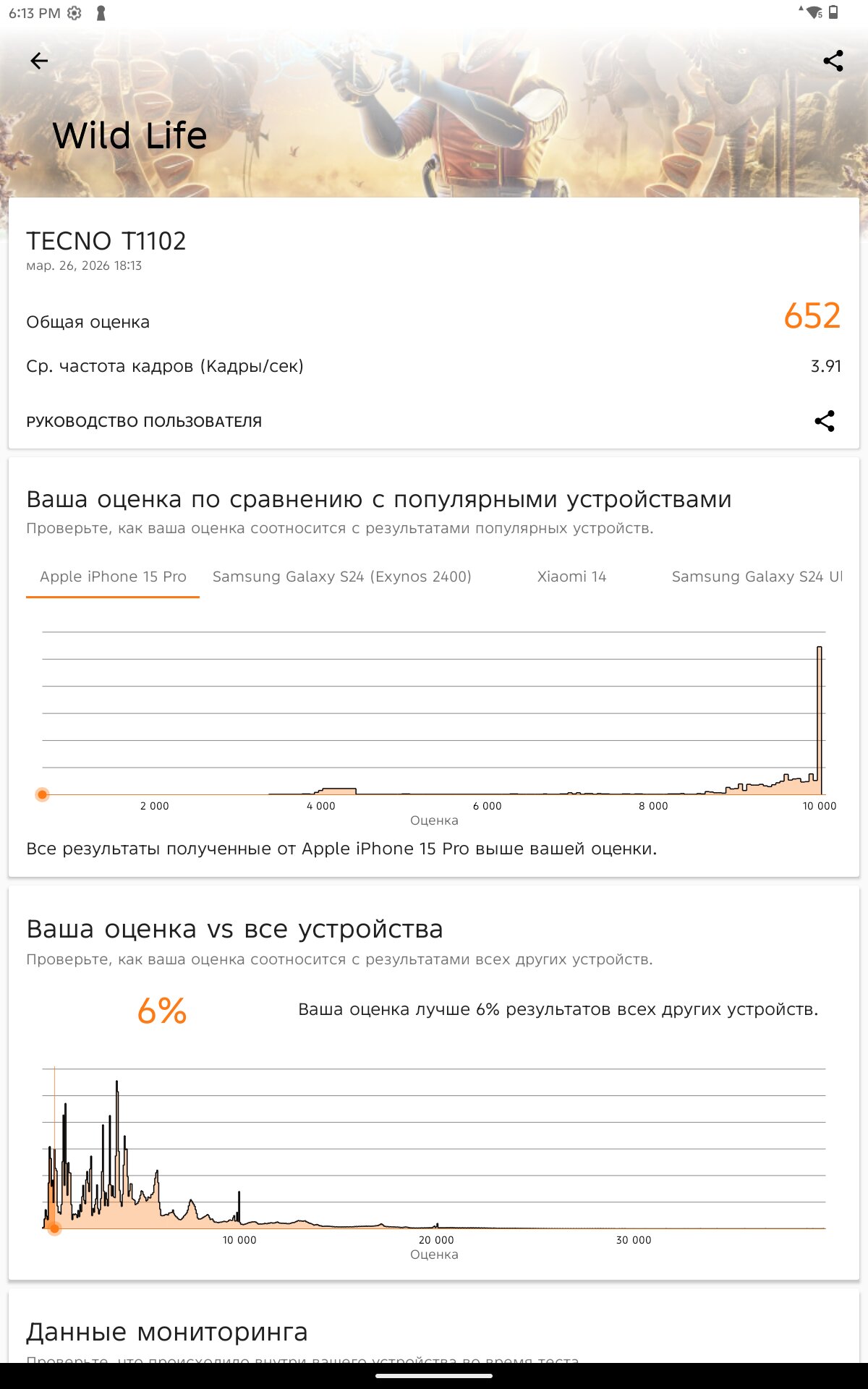 При этом процессор начального уровня обеспечивает планшет высокой стабильностью даже при длительных игровых нагрузках — система охлаждения прекрасно распределяет тепловую энергию по корпусу, так что заметить троттлинг без специальных замеров вы, скорее всего, не сможете. Конечно, немного тактовую частоту чип всё же вынужден скинуть, но происходит это плавно и очень незначительно.