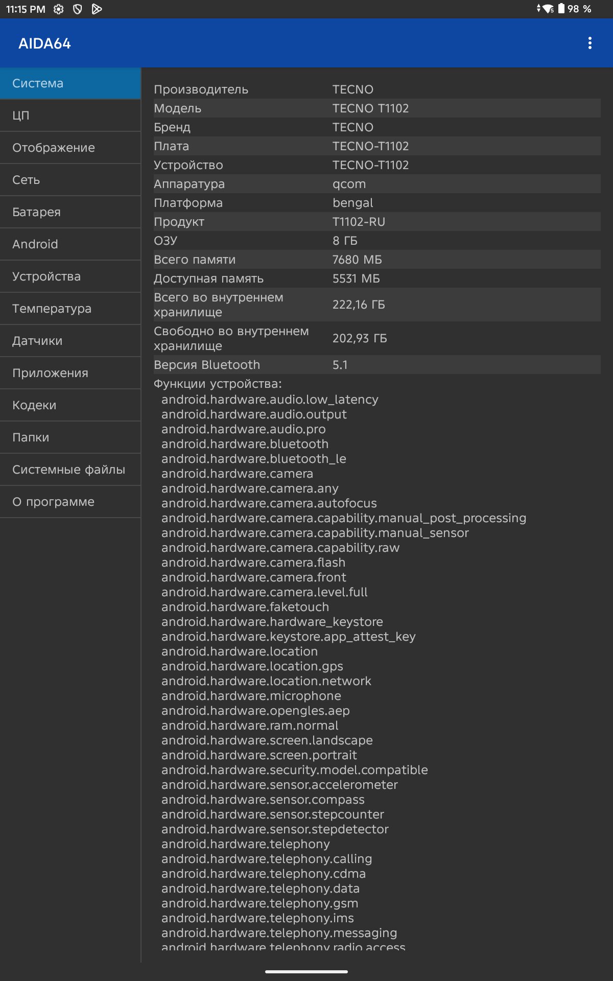 Планшет Tecno MegaPad SE работает на базе 8-ядерного процессора Qualcomm Snapdragon 685 — это наглядный представитель чипов начального уровня, который демонстрирует соответствующую производительность. Меня порадовало, что операционная система работает шустро и отзывчиво — лишь пару раз были заметны незначительные подтормаживания при запуске некоторых пунктов меню в «Настройках», но в общем и целом планшет работает плавно и стабильно, рабочие столы листаются быстро, приложения запускаются даже «на холодную» за доли секунды.