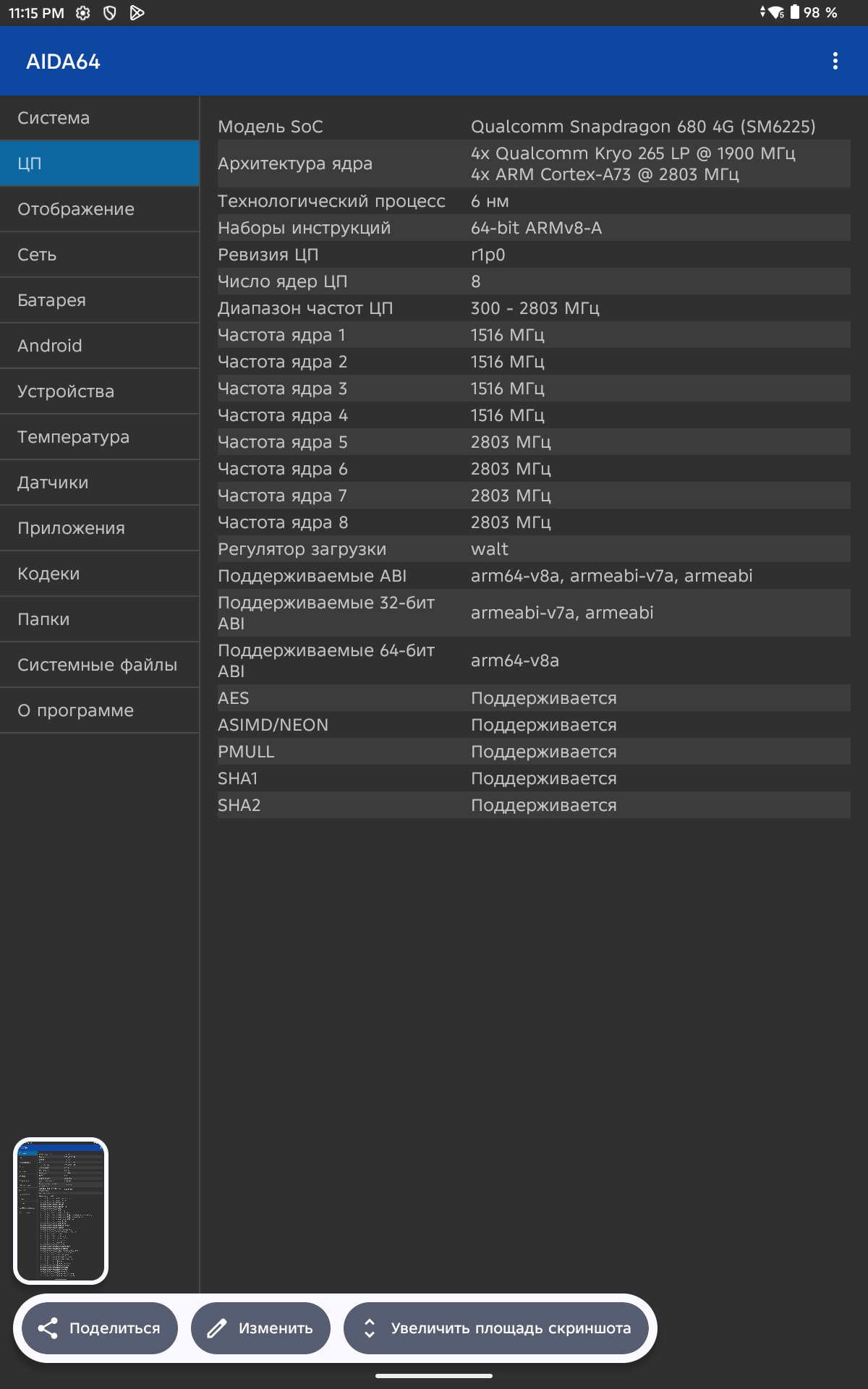 - Процессор: Qualcomm Snapdragon 685, 8 ядер (6 нм), 4× Cortex-A73 2,8 ГГц + 4× Cortex-A53 1,9 ГГц, графика Adreno 610.