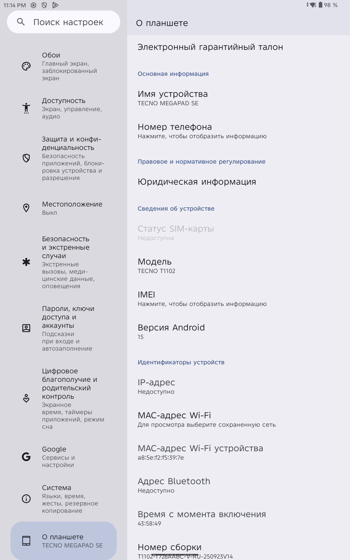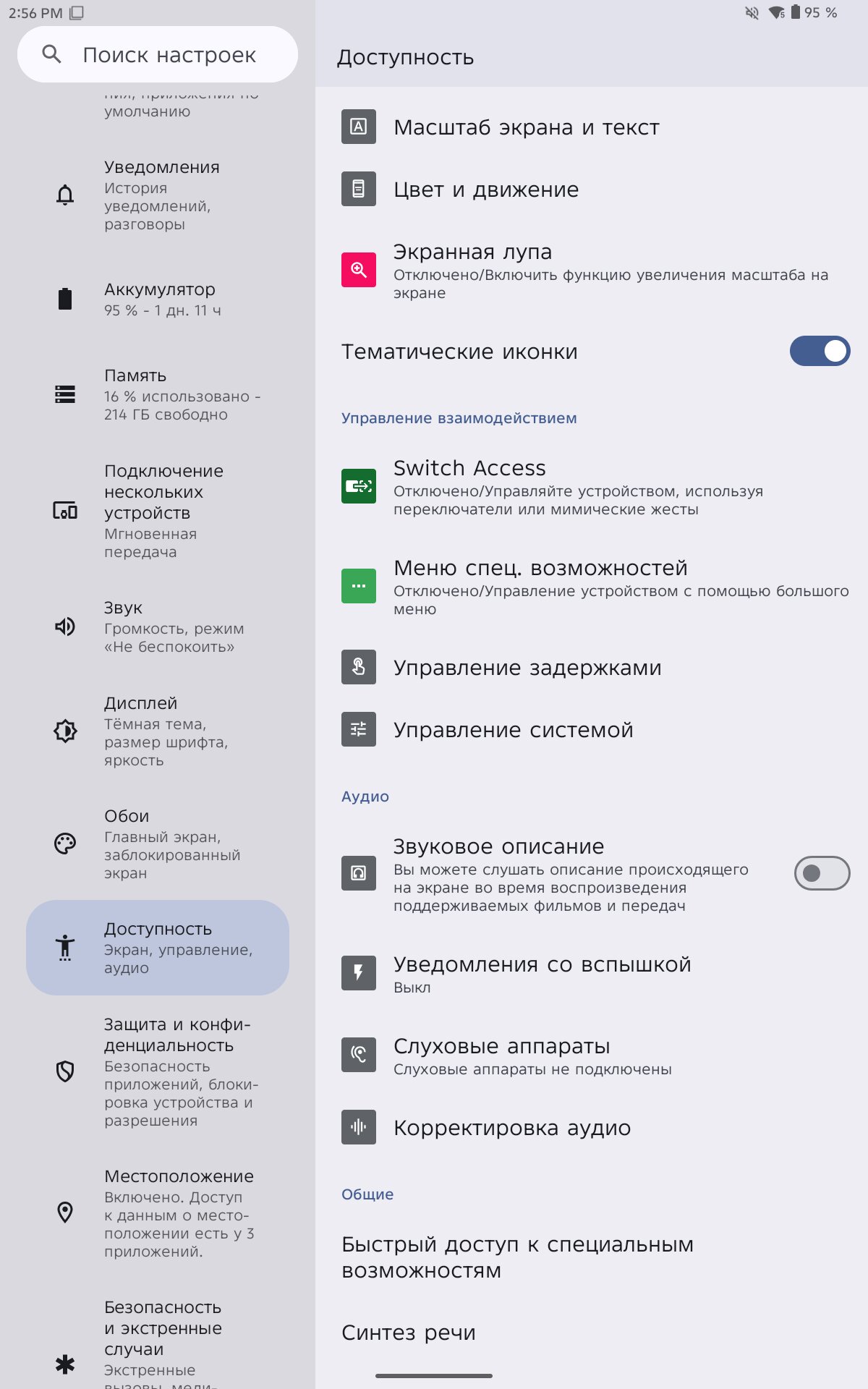 Примечательно, что хотя у планшета на обзоре 256 ГБ памяти на борту, на деле из коробки пользователь получает в доступ лишь 202 ГБ — остальное съедает операционная система Android 15 и предустановленный софт. Соответственно, так как планшет многие берут для фильмов и сериалов, которые занимают по 20 ГБ и более, советую дополнительно присмотреться к карте памяти microSD — поддерживаются модели до 512 ГБ включительно. Это сильно расширит возможности планшета в плане развлечений.