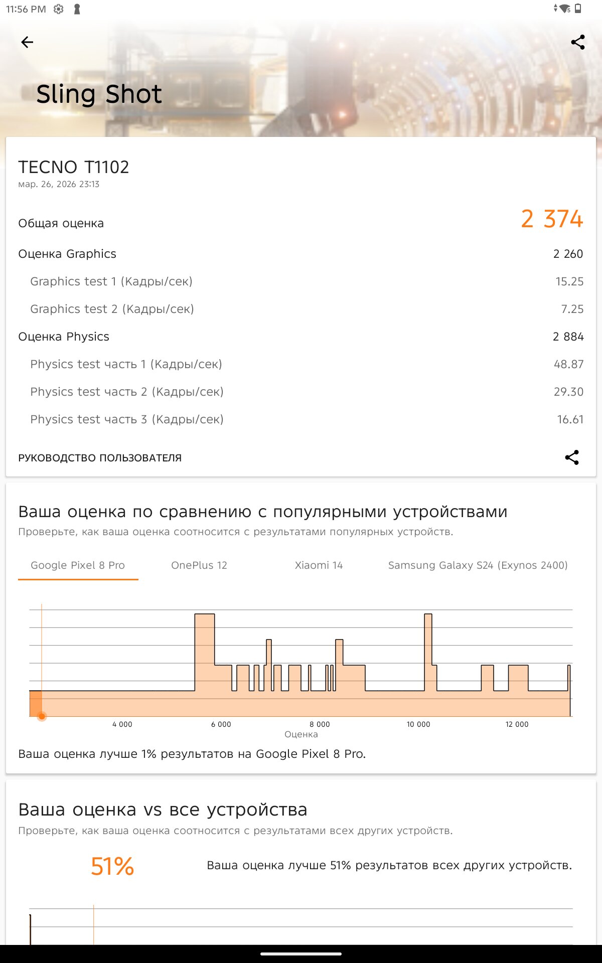 Если же говорить о возможностях в игровых задачах, то, к сожалению, надеяться на высокую частоту кадров в ААА-играх не приходится. Даже если скинуть настройки на минимальные, Snapdragon 685 далеко не всегда сможет выдать 20-30 стабильных кадров в секунду, так что рекомендовать планшет заядлым геймерам, желающим играть в соревновательные шутеры, не могу. С другой стороны, в более простых аркадных проектах устройство себя чувствует гораздо увереннее, так что поиграть всё же выйдет.