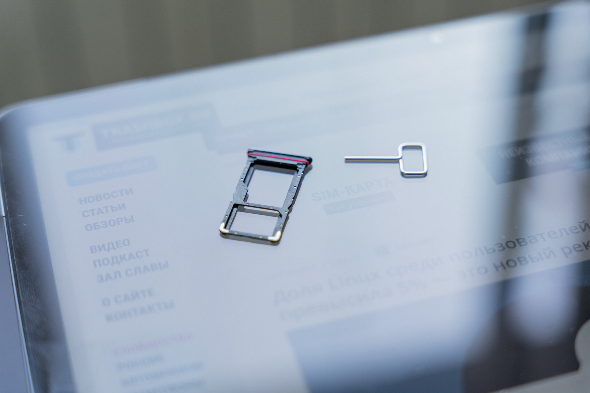 Из интересных деталей стоит выделить слот под SIM-карту и карту памяти в формате microSD — он расположен на правой боковой грани ниже кнопки блокировки экрана и качельки громкости. Сам по себе слот ничем не примечателен, но не может не радовать возможность подключиться к сотовой сети или расширить встроенную память.