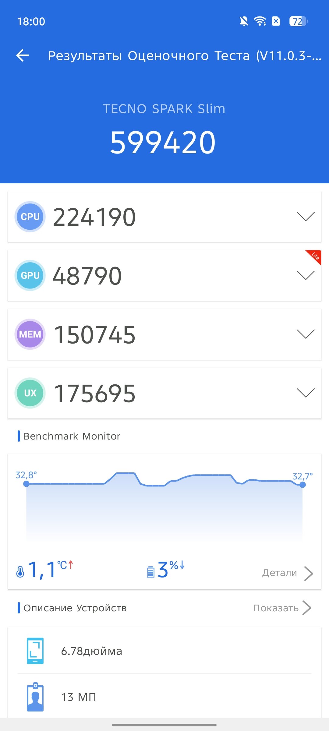 Ещё у SPARK Slim есть важная фишка для геймеров — речь о технологии «обходной» зарядки. Суть в том, что смартфон в сценарии с повышенными нагрузками может работать непосредственно от сети, то есть энергия в данном случае идёт сразу на чип, минуя батарею. И это позволяет лишний раз не изнашивать аккумулятор. При этом производитель заявляет, что аккумуляторная батарея смартфона SPARK Slim способна выдержать более 2000 циклов зарядки, сохранив при этом свыше 80% от первоначальной ёмкости. Соответственно, гаджет проживёт как минимум 5 лет без заметных просадок автономности.