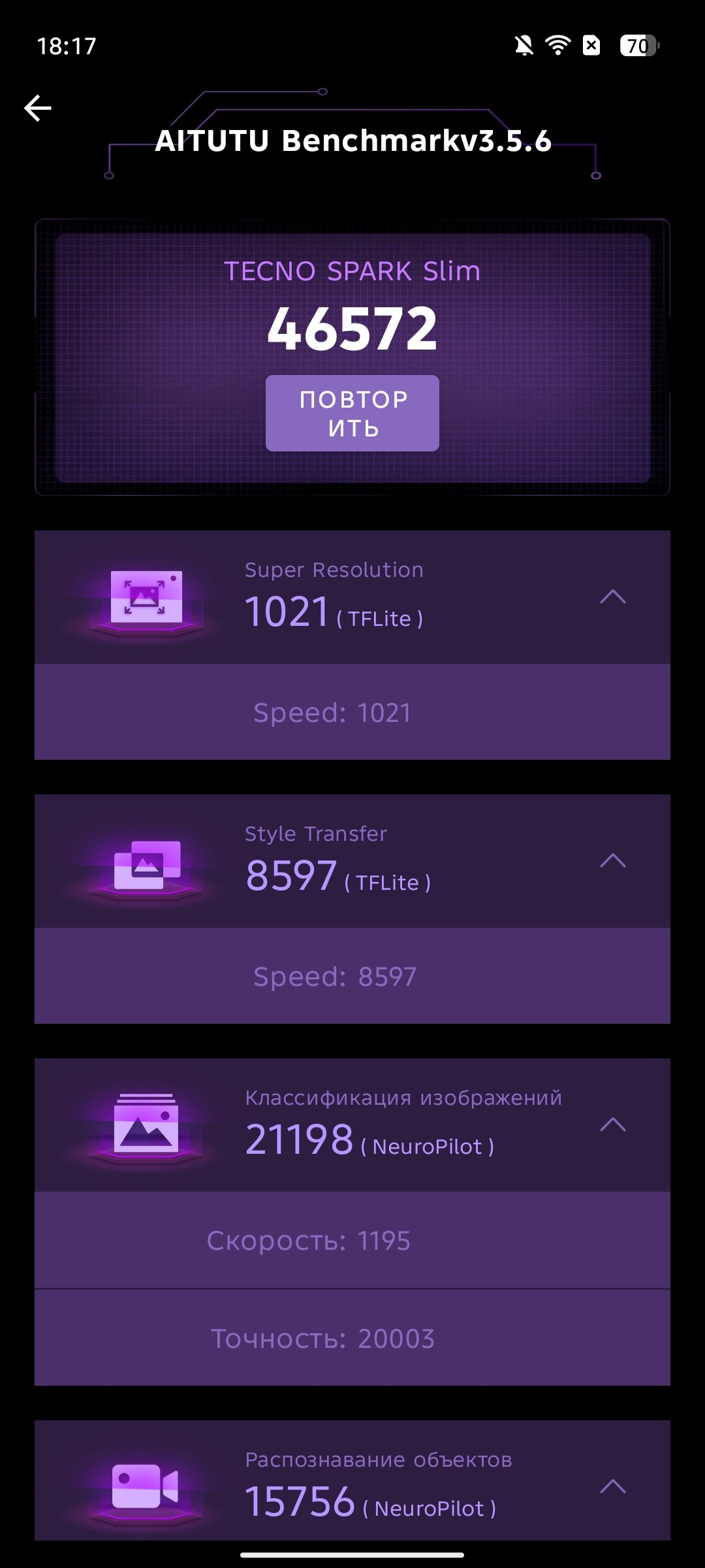 Безусловно, система на кристалле справляется и с более тяжёлыми задачами — смартфон поставляется с умным ассистентом Ella и набором фирменных ИИ-инструментов для генерации текста, редактирования изображений и многого другого. Более того, на SPARK Slim можно поиграть в различные игры — от одиночных аркадных проектов до соревновательных тайтлов. Просто необходимо понимать, что Helio G200 не является флагманским процессором, а значит, ожидать максимальных настроек графики и запредельной частоты кадров не стоит.