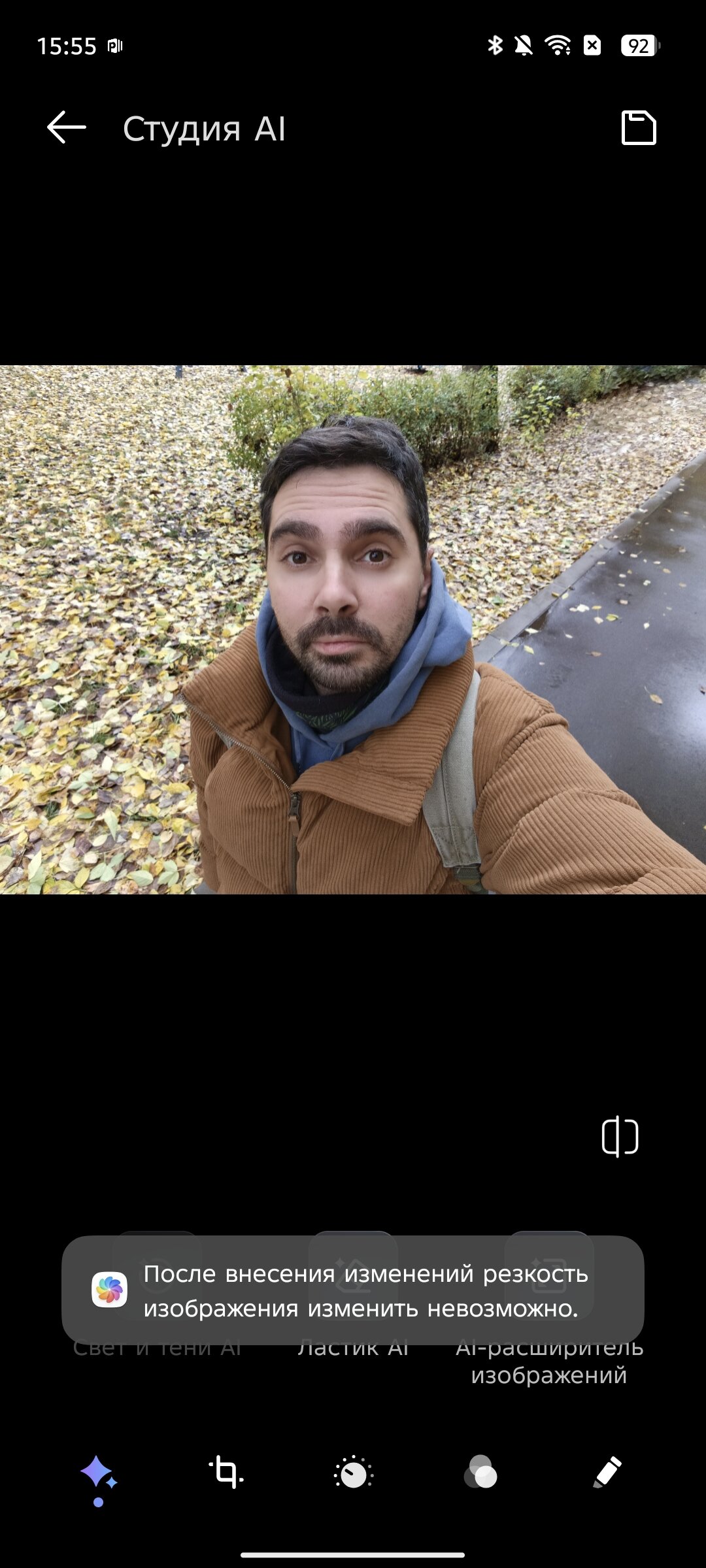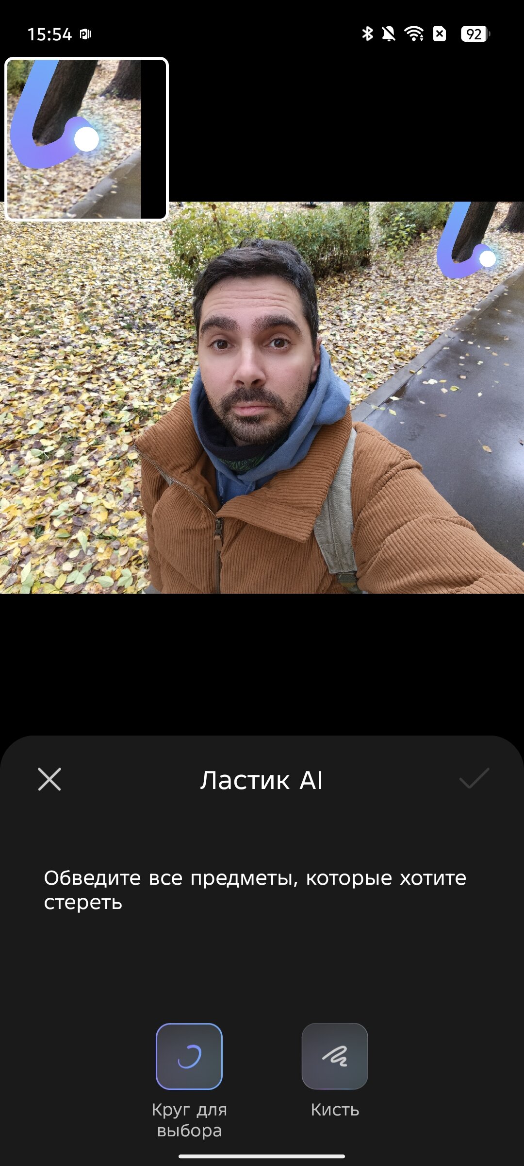 Кроме того, операционная система смартфона предлагает широкий набор ИИ-инструментов для постобработки снимков, что позволяет улучшить кадр всего в пару нажатий. Например, при помощи «Ластика AI 2.0» можно избавить фотографию от лишних объектов или случайных прохожих.