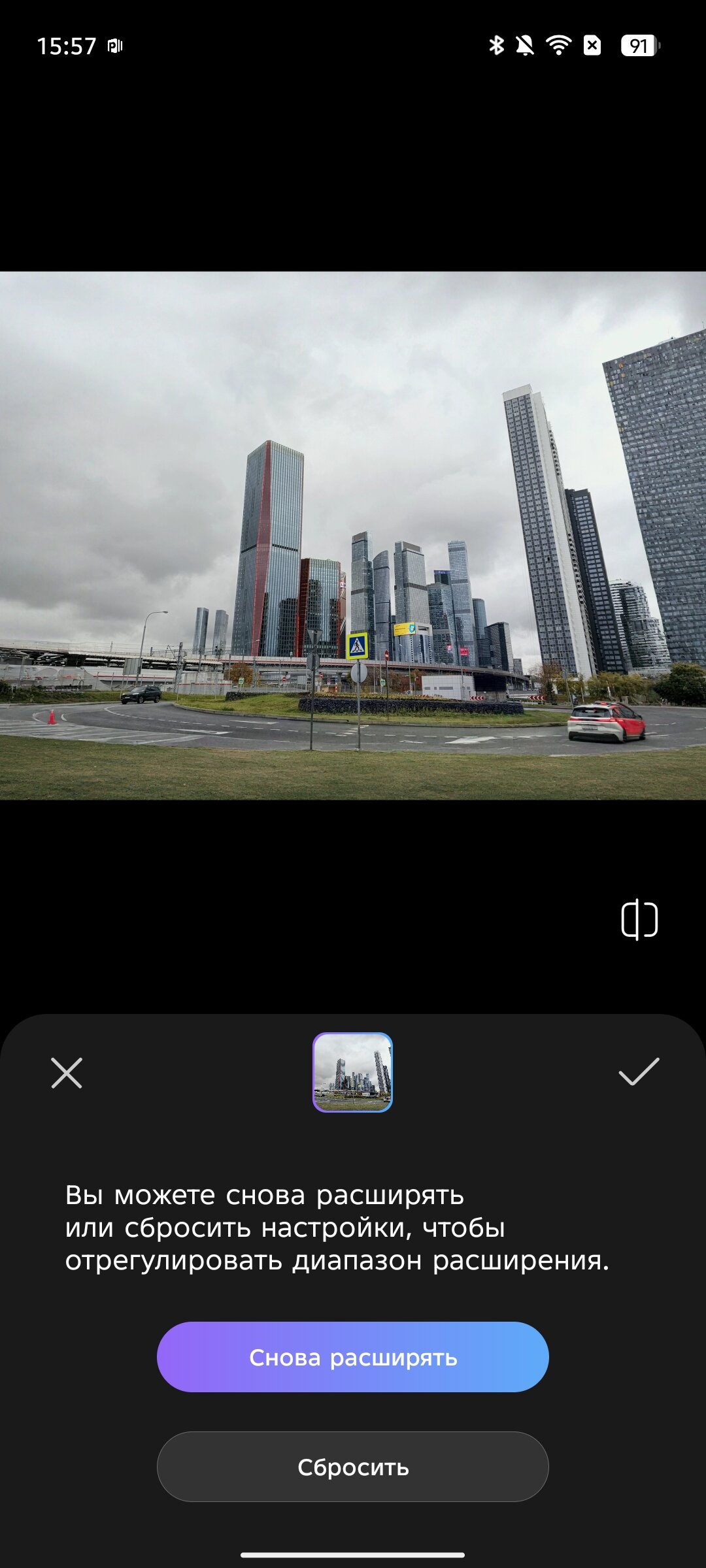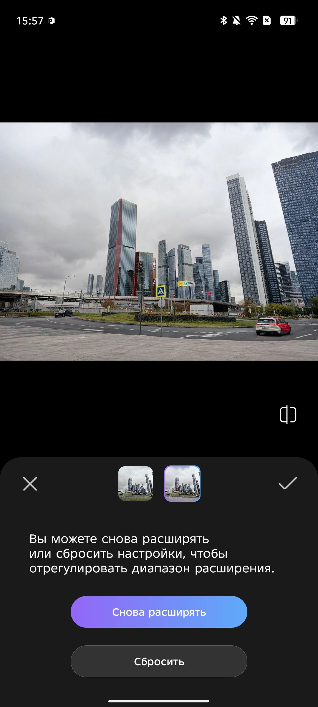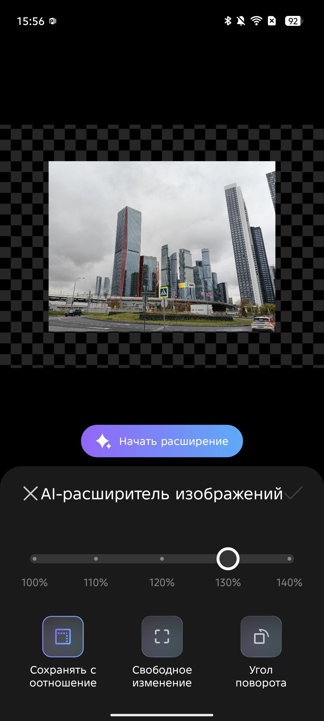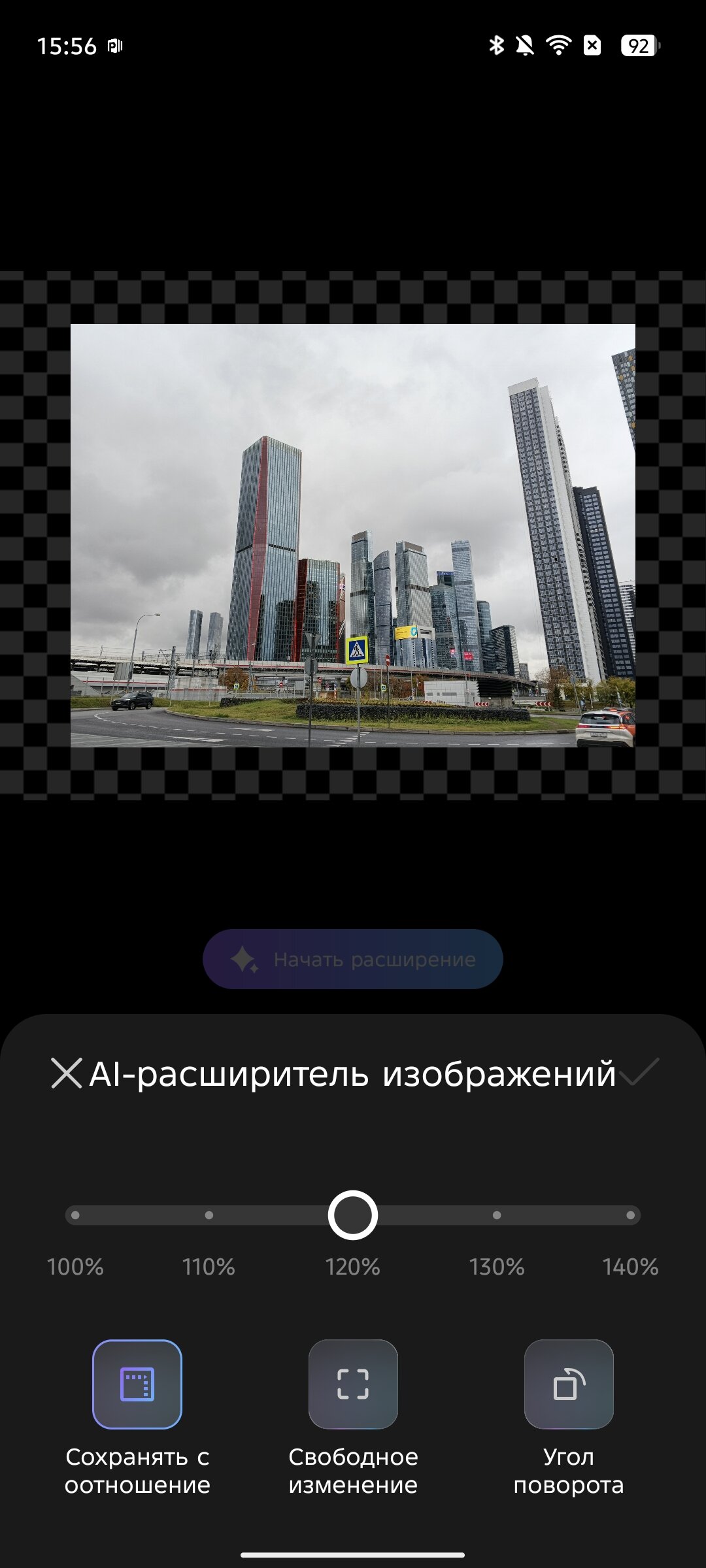 Или если в процессе кадрирования изображение получилось слишком узким, «AI-расширитель изображений» без труда дорисует недостающую область (можно увеличить текущий кадр на 10-40%).