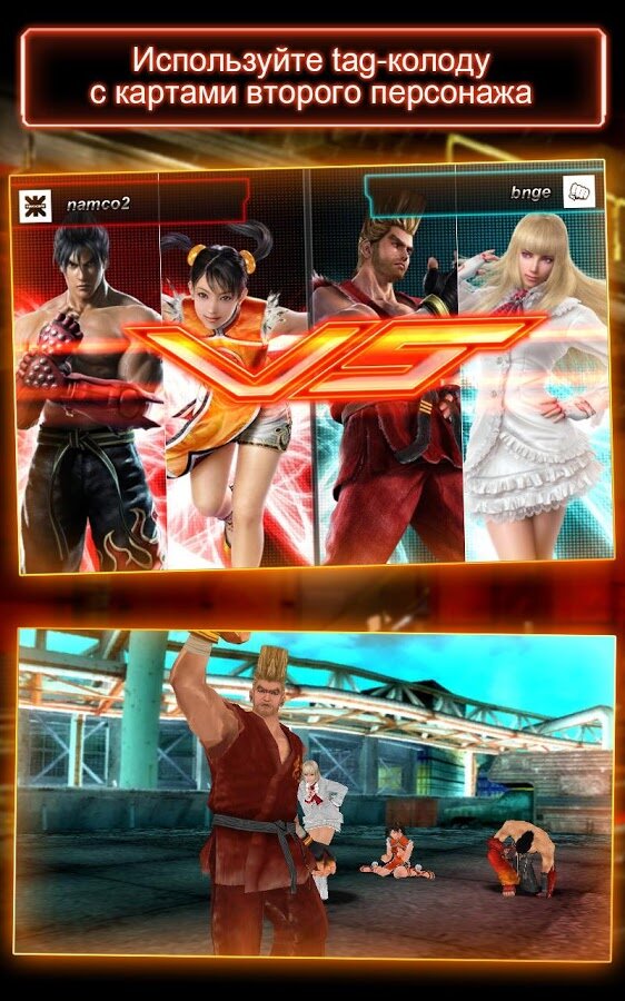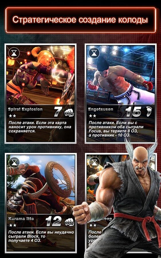 Tekken Card Tournament — Увлекательный пошаговый файтинг с отличным геймплеем на android. В игре приятная графика, уникальные коллекционные карты, большое количество соперников. Выбирайте себе игрока, вступите в схватку с лучшими бойцами, побеждайте и становитесь чемпионом!