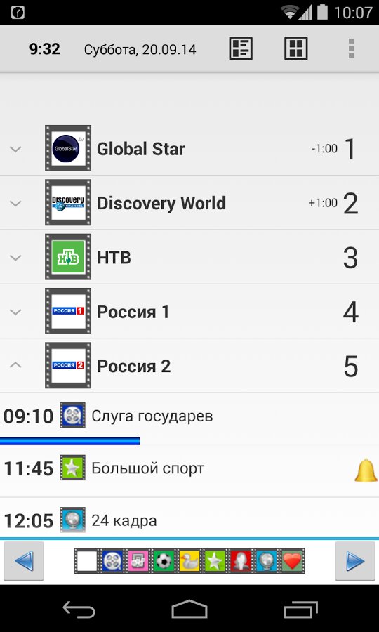 - Фильтрация передач по времени(утро, вечер, день) и по категориям(например, отображать только Фильмы, сериалы);