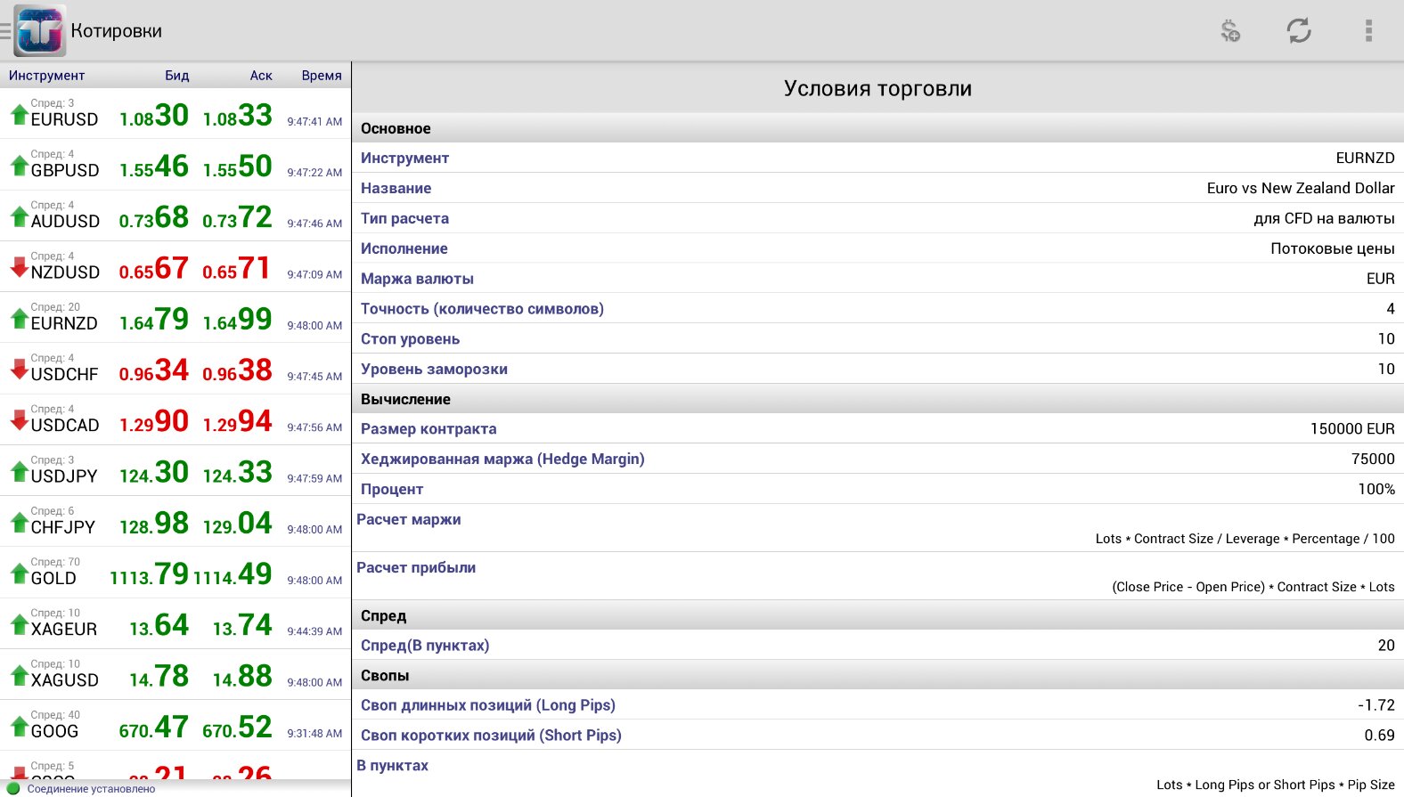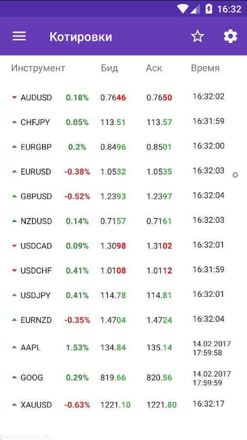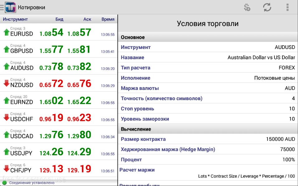 - Котировки основных валют с настройкой списка отображаемых символов и периода обновления.