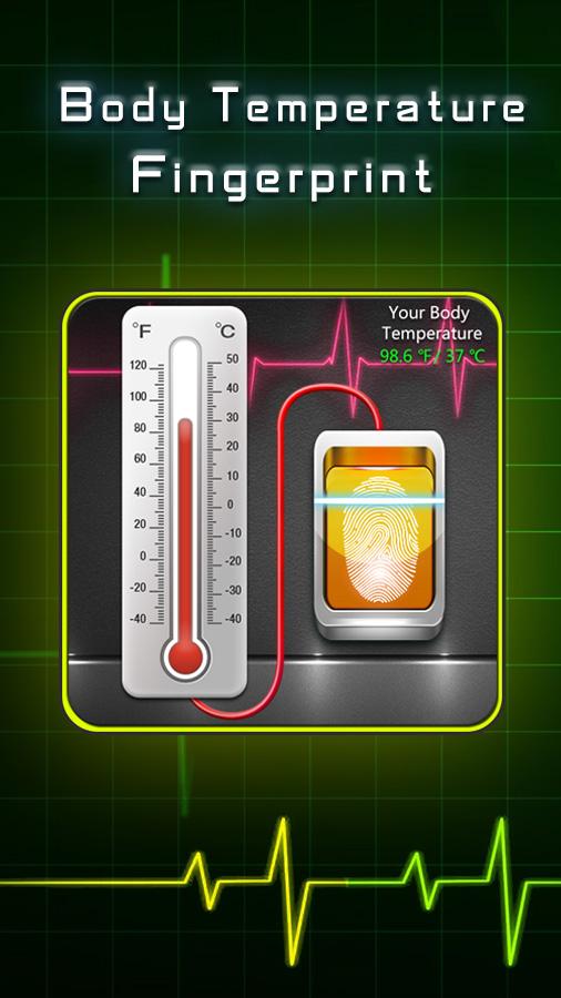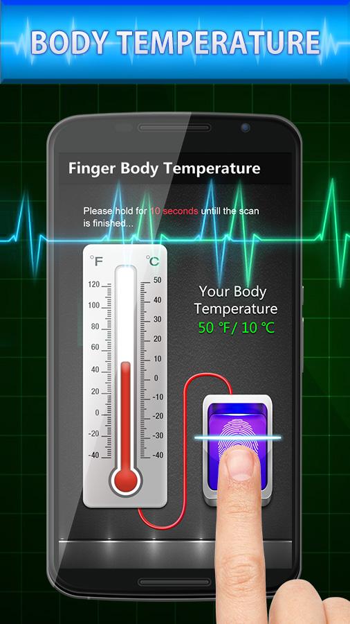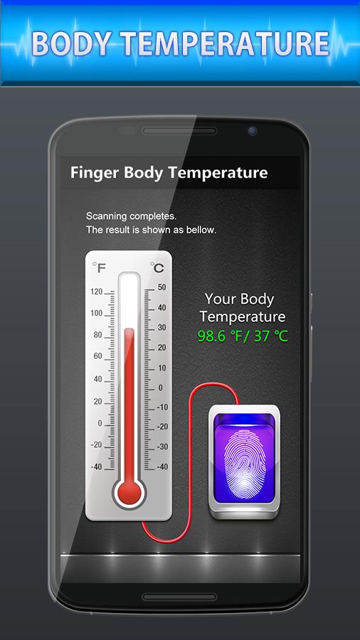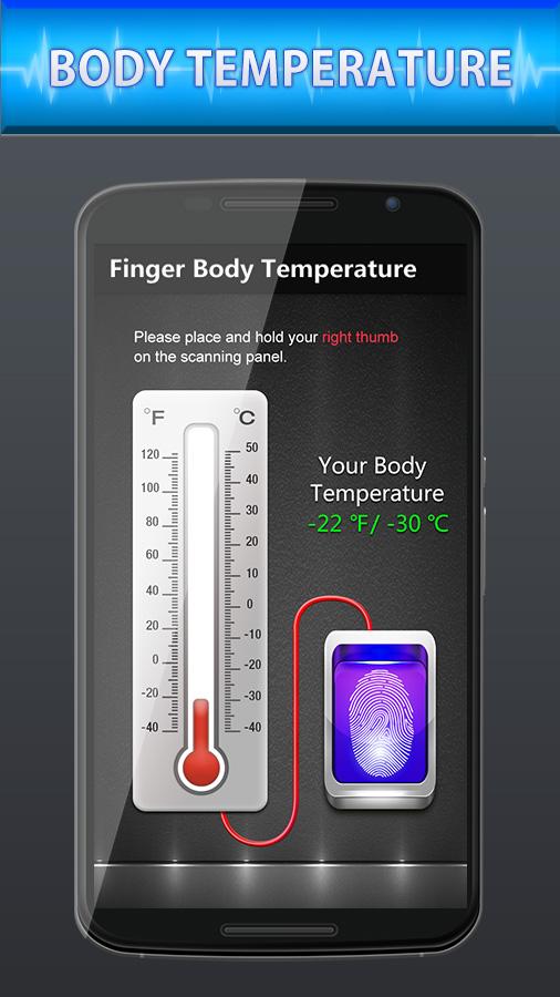 Температура Finger Тело — шуточное приложение, которое имитирует термометр. Просто приложи палец к экрану и программа покажет температуру. Отображаются градусы Цельсия или Фаренгейта.