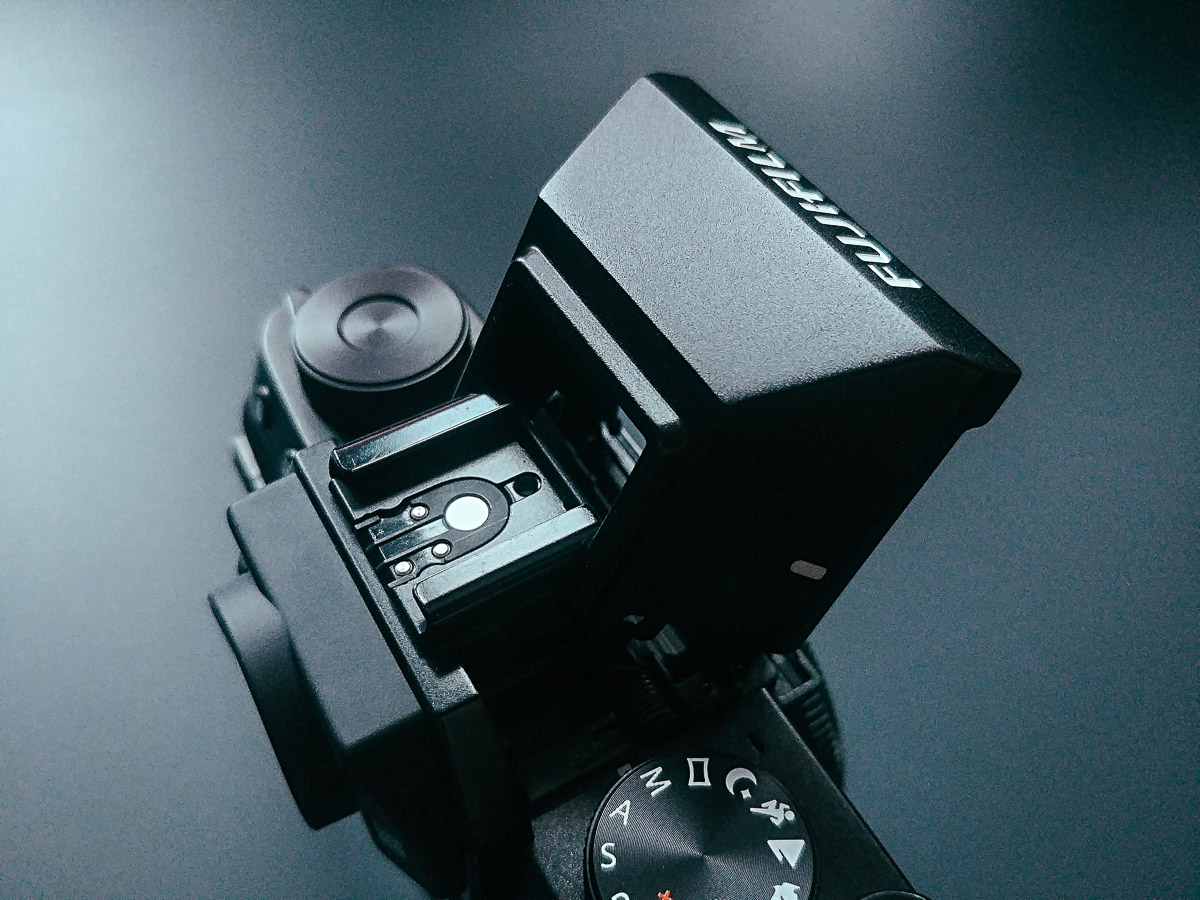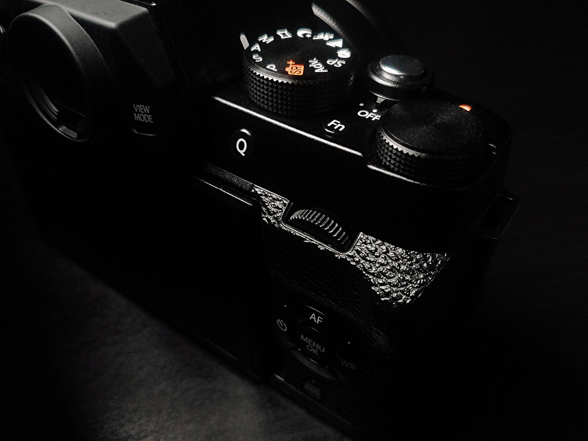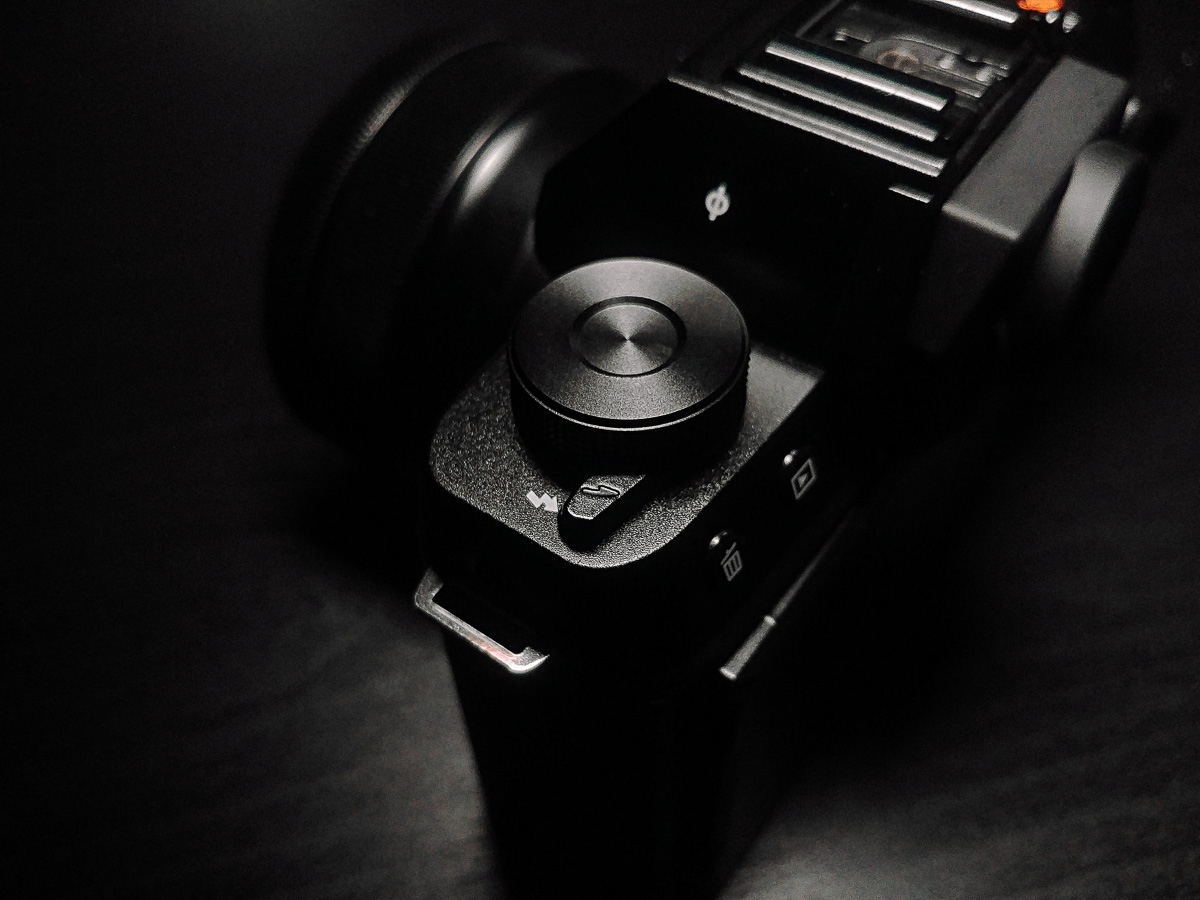 Взглянем на камеру сверху. Тут львиная доля органов управления! Слева направо. Первый блок — это неприметный рычажок, который открывает вспышку. Она прячется сверху, где логотип Fujifilm. У зеркалок в этом выступе находится призма, а тут вспышка. Элегантно. Рядом с рычажком диск, он многофункциональный, настраивается в меню, мы в итоге повесили на него функцию смены значений ISO. Далее диск режимов съёмки. Непосредственно к описанию режимов мы вернёмся позже. Кнопка Fn также многофункциональна и настраивается через меню. По умолчанию на ней висит настройка ISO, но тянуться к ней не очень удобно. Следующий диск можно сказать один из главных, это регулировка выдержки. Далее, отдельная кнопка для записи видео и рычажок вкл./выкл с кнопкой спуска затвора. В целом всё лаконично в вопросе эргономики, мы можем лишь немного пожурить диск регулировки выдержки, он туговат, с острой гранью и не самой явной перфорацией, что несколько осложняет его использование. Если вы снимаете в ручном режиме конечно. Ещё сверху находится «горячий башмак» для вспышки и крепления аксессуаров. К счастью, он стандартного размера.