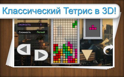 В этот раз вы будете играть в обновленный тетрис, выполненный полностью в трехмерной графике. Блоки будут объемные, а уничтожение линий будет выглядеть эффектно и сопровождаться приятным звуком. В остальном же все осталось так же, как и в детстве – ваша задача сводится к тому чтобы набрать как можно больше очков, которые начисляются за каждую появляющуюся фигуру и в большей степени за уничтожение горизонтальной линии, а скорость падения фигур будет зависеть от количества набранных очков.Нововведения:
