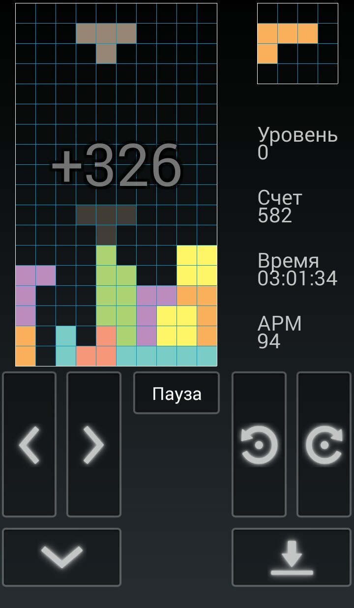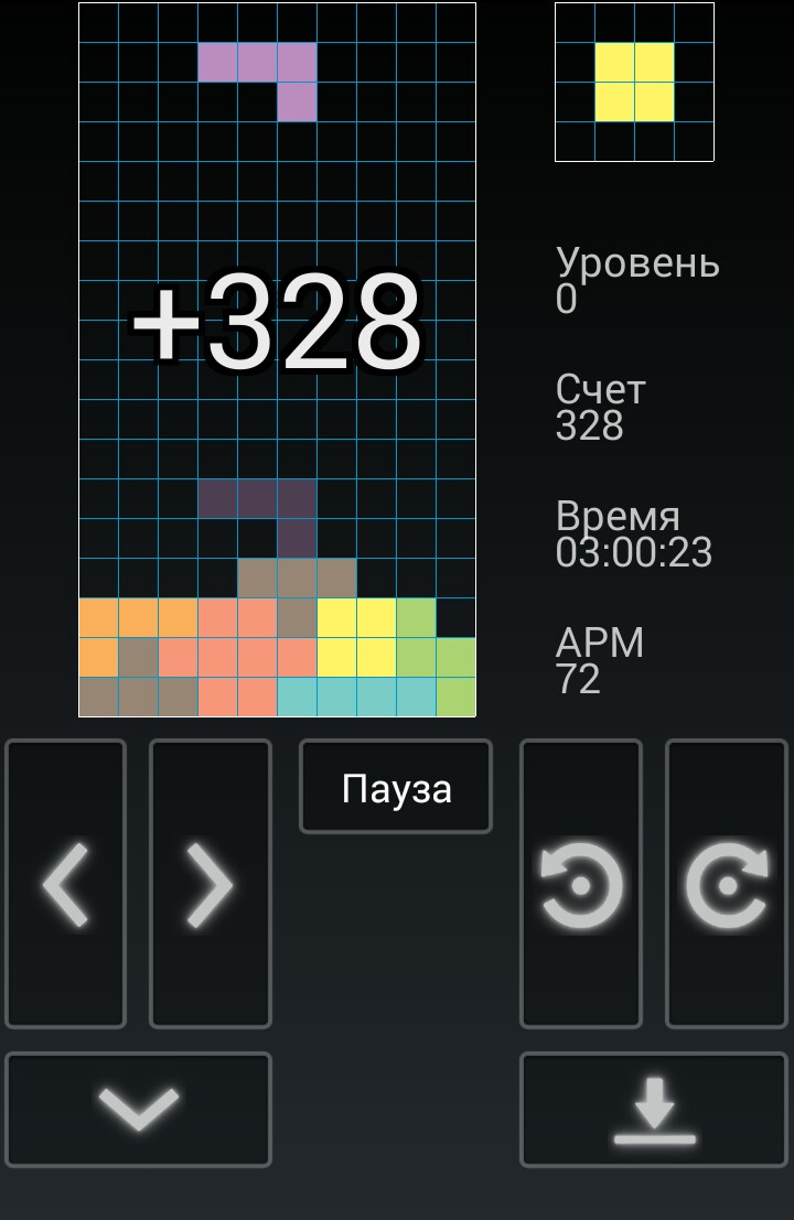 Случайные фигурки тетрамино падают сверху. В полёте игрок может поворачивать фигурку на 90° и двигать её по горизонтали. Также можно «сбрасывать» фигурку, то есть ускорять её падение, когда уже решено, куда фигурка должна упасть. Фигурка летит до тех пор, пока не наткнётся на другую фигурку либо на дно. Если при этом заполнился горизонтальный ряд из 10 клеток, он пропадает и всё, что выше него, опускается на одну клетку. Дополнительно показывается фигурка, которая будет следовать после текущей — это подсказка, которая позволяет игроку планировать действия. Темп игры постепенно увеличивается. Игра заканчивается, когда новая фигурка не может поместиться. Игрок получает очки за каждый заполненный ряд, поэтому его задача — заполнять ряды (по вертикали) как можно дольше, чтобы таким образом получить как можно больше очков и перейти на следующий уровень.