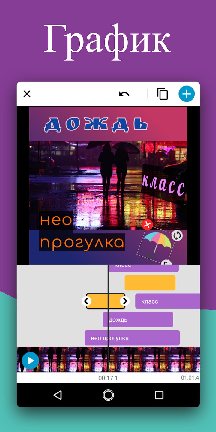 Этот редактор позволяет превращать обычные видео в профессиональные проекты с динамичными надписями и стикерами. Вы сможете настраивать шрифты, добавлять анимацию к тексту, менять цвета и фон подложки. Поддерживается импорт музыки из памяти устройства и извлечение звука из видеозаписей. Инструменты выравнивания помогут идеально расположить каждый элемент.