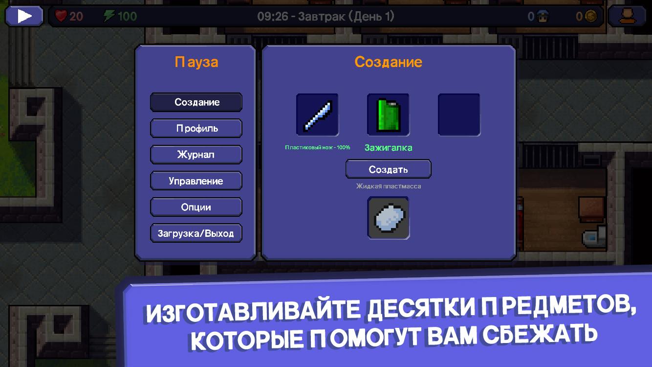 The Escapists — это уникальное погружение в тюремную среду, где можно создать множество предметов и сочетать их, отважно борясь за обретение свободы. Жизнь в тюрьме заставит вас быть начеку, помня о строгих правилах, которые придется нарушить. Охранники постараются пресечь любые попытки побега, поэтому постарайтесь не вызывать подозрений и являйтесь на перекличку, работайте и прячьте украденные материалы.