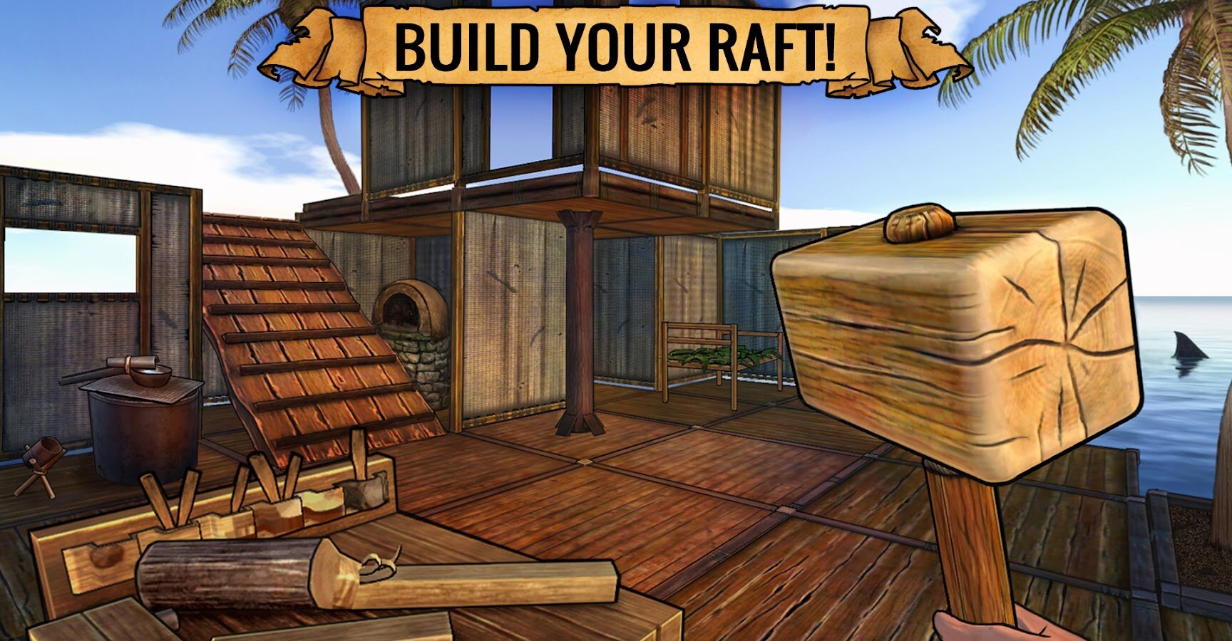 - Усовершенствуйте свой плот! Начните с небольшого куска дерева, который едва держит выжившего на плаву, и стройте, стройте, стройте! Сначала поставьте кровати и стулья, затем создайте печь, верстак, очиститель воды и еще массу полезных сооружений. Развивайте свои строительные навыки достаточно хорошо, и ваш герой сможет создать практически все, даже настоящую баллисту для защиты вашего убежища! Непробиваемая крепость в стиле стимпанк или гламурный отель с видом на океан — крафтите свой плот, пока он не сведет вас с ума!