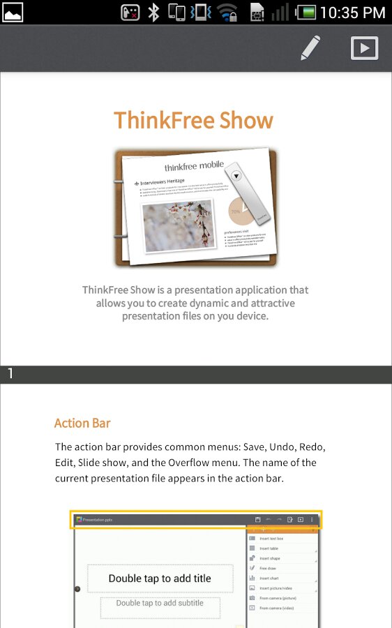 Идет на Samsung S5570 Galaxy Mini и Prestigio Multipad PMP3170B, но только Thinkfree Office 4.2.120417. На Prestigio Multipad PMP3170B, при установке Thinkfree Office 5.0.120906 и Thinkfree Office 5.0.121115 выскакивает синтаксическая ошибка.
