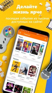 Покупая через приложение, ваши билеты автоматически становятся доступны в личном кабинете — просто покажите его с экрана мобильного телефона контроллеру на входе в зал, либо, в случае с некоторыми кинотеатрами, обменяйте на настоящий билет – мы усердно работаем над тем, чтобы клиенты Тикетон повсюду могли пройти на сеанс, минуя кассу.