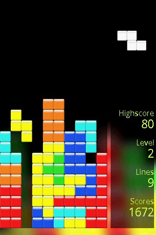 tiltTetris — еще одна вариация тетриса для Android. Управление с помощью встроенного акселерометра, фигуры переворачиваются по клику. На каждом следующем уровне фигуры падают все быстрее.