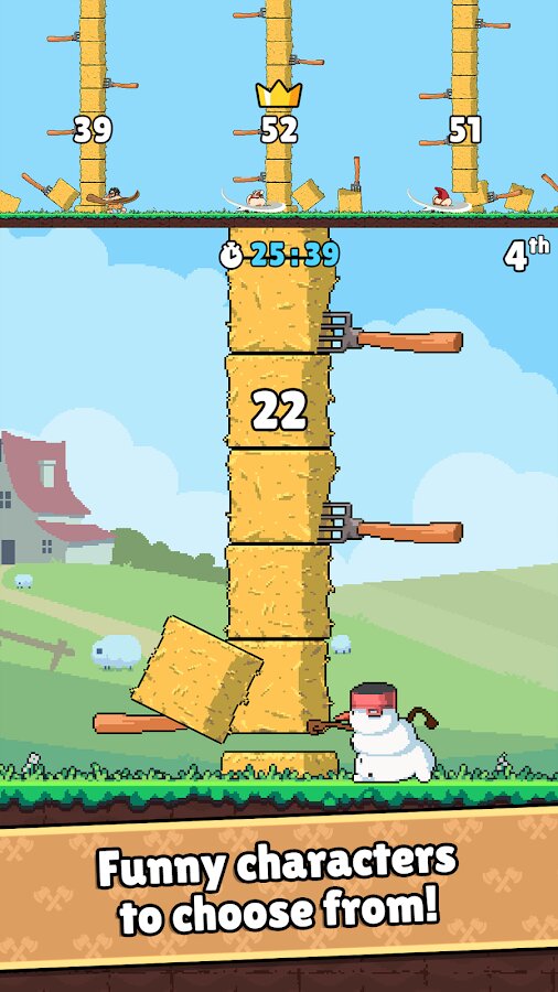 Возьмите в руки топор и вступите в дуэли с другими игроками, стройте деревню, защищайте её от зомби, прокачивайте здания и участвуйте в турнирах. Timberman вернулся — но теперь это не просто игра на реакцию, а полноценная онлайн-битва с элементами стратегии и развития.