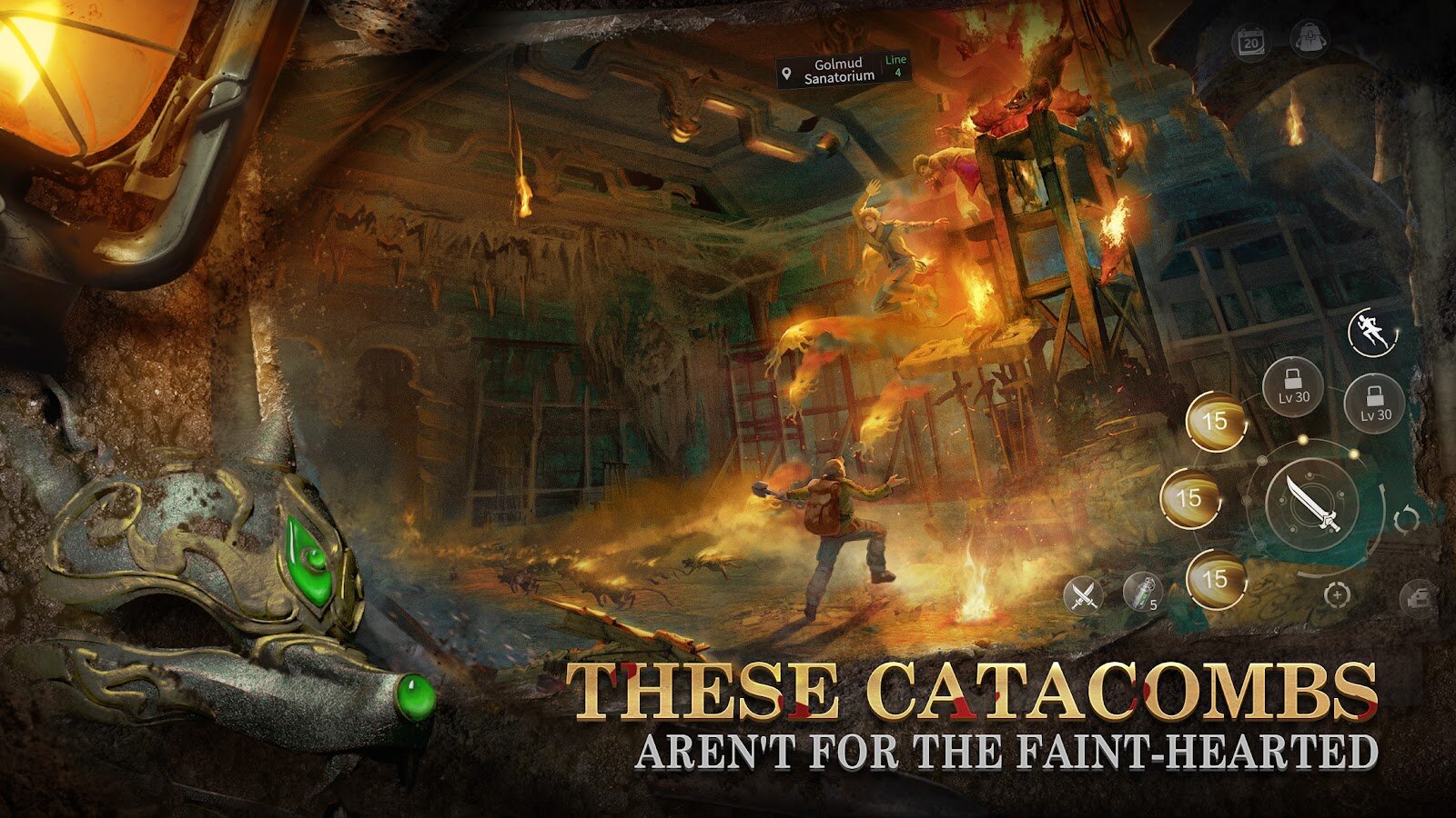 - Испытайте глубокий, интригующий сюжет. Таинственные норы нежити, опасные катакомбы кровавых зомби, бесконечное множество новых мест для исследования.