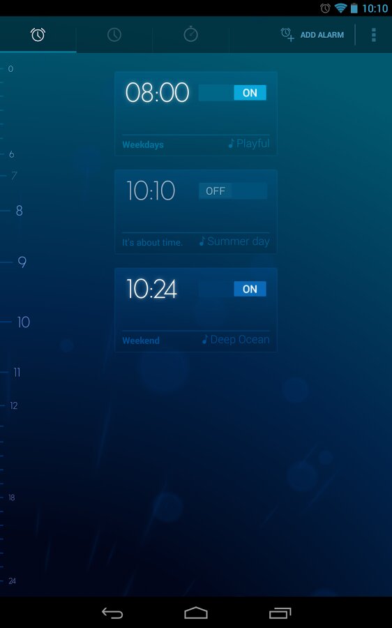 - Виджет для рабочего стола и интеграция с Google Now, повторяющиеся будильники, крутые анимации, нарастающая громкость будильника, откладывание сигнала кнопками громкости и многое другое.