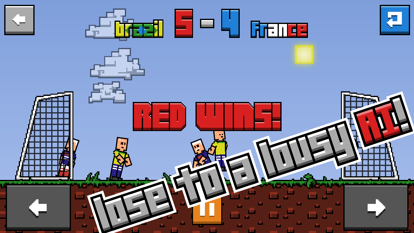 Это — футбольный симулятор. В этой игре вам предстоит играть за команду из 2 человек. Чтобы выиграть раунд, вам будет необходимо забить 5 голов в чужие ворота. Но не стоит думать, что эта игра легкая, ведь вы можете случайно забить гол самому себе!