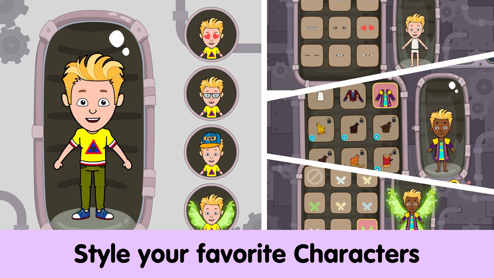 Дайте волю воображению и отправляйтесь в самые захватывающие приключения в вашей жизни! Тизи мир богат локациями для исследования: вы можете отправиться в сказочный город или жить как астронавт, покорять морские просторы с пиратами или вернуться во времена первобытных людей и мамонтов. Каждая локация отличается не только своим внешним видом, но и вариантами взаимодействия с окружающей средой. В Тизи мире вы сможете кататься на единорогах, общаться с настоящими инопланетянами, бороздить морем на пиратском корабле в поисках приключений и учиться разводить костер в пещерах!