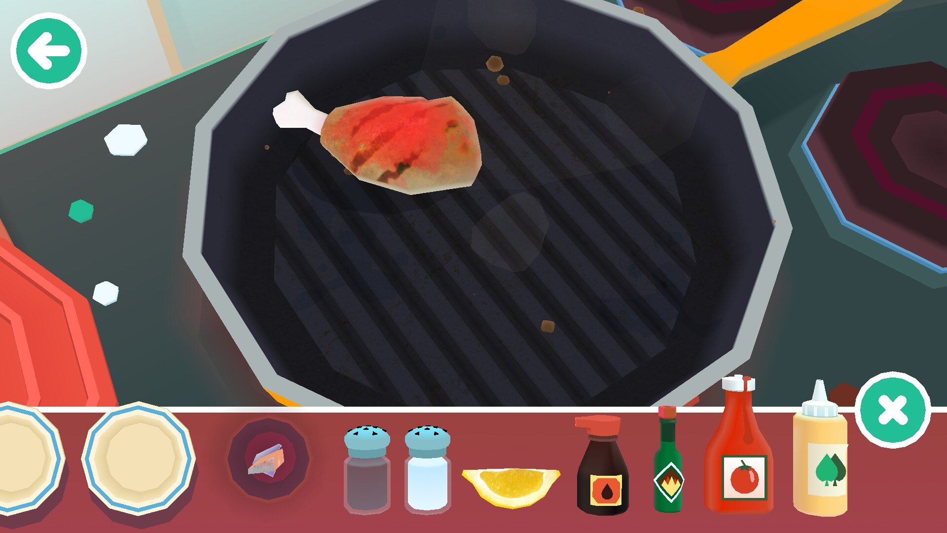 Управление и интерфейс предельно просты и понятны. В левой части находится холодильник с овощами, фруктами и разнообразным мясом, слева – плита со всем необходимым для готовки. Под кнопкой соли и перца спрятана панель с необходимыми приправами и соусами. Посередине сидит человек или забавный добрый монстр, который ждет, когда его покормят.