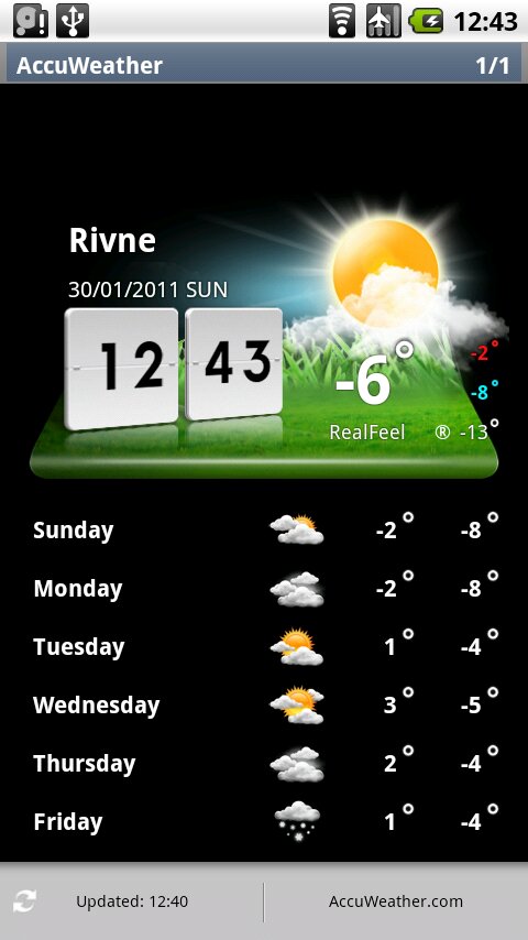 Today Briefing Widget — приятный виджет погоды с Optimus 2X. Есть две версии виджета, с фоном и без.