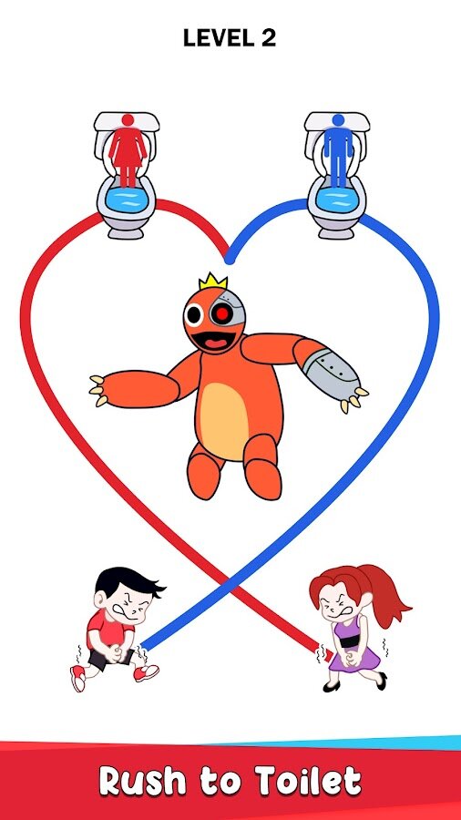 Toilet Rush Race – головоломка с рисованием вам нужно найти способ добраться до туалета. Нарисуйте линию, чтобы соединить злодея и унитаз — но как быстро вы сможете помочь ему/ей снять давление