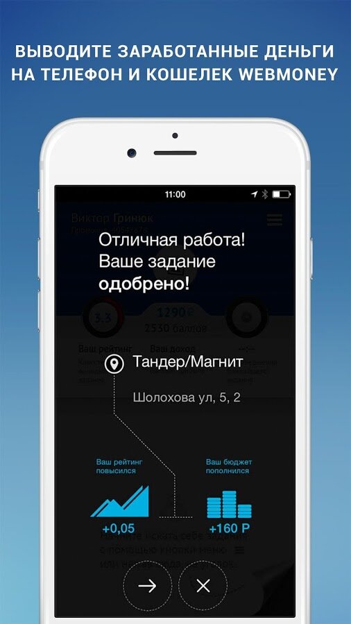 Выполнение одного задания займет не больше 10 минут, а компенсация составит от 100 до 400 рублей. Оплата производится на телефон или электронный кошелек WebMoney.