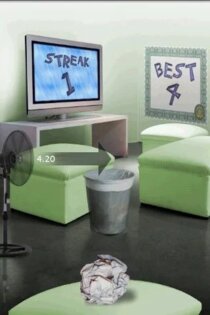 Вы должны попасть шариком, скатанным из бумаги, в корзину мусора. При этом ваш шарик будет сдувать установленный сбоку вентилятор.