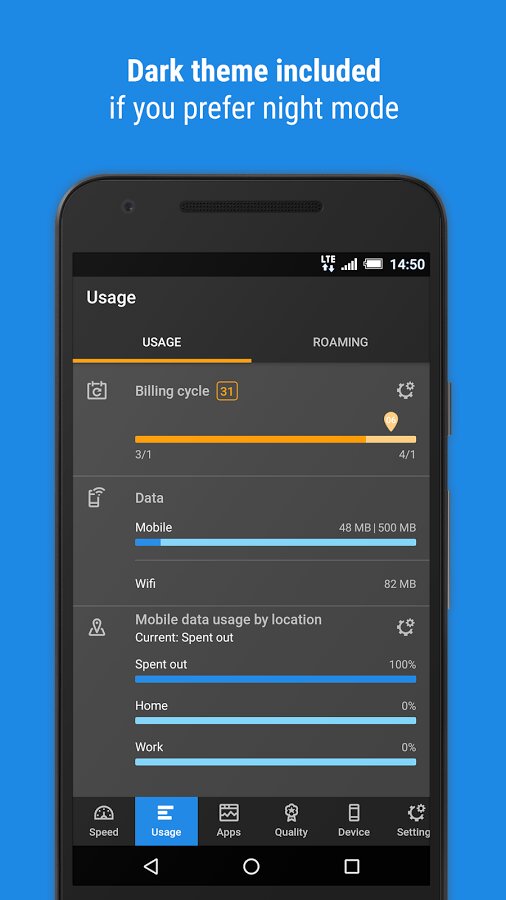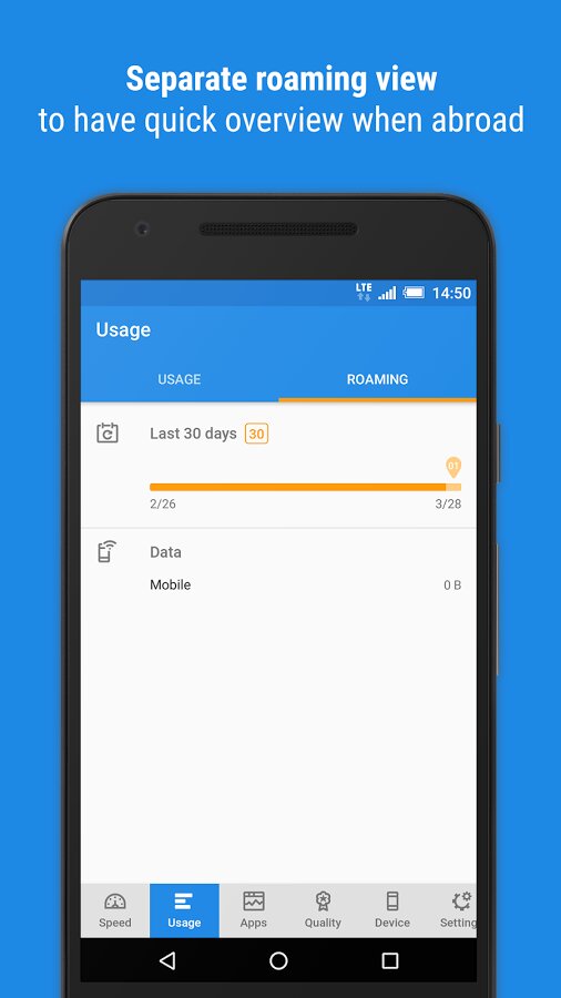 - Использование данных. Отслеживайте использование данных за определенный период времени. Таким образом, вы можете установить все детали вашего тарифного плана, например, дату начала расчетного периода или максимальный объем данных. Вы также можете выбрать продолжительность расчетного периода: еженедельно, ежемесячно или 30 дней. Traffic Monitor измеряет использование данных в целом и по приложениям. Таким образом, вы всегда будете в курсе событий, поскольку Traffic Monitor предупреждает вас о превышении установленного объема данных. Кроме того, использование данных за границей отображается отдельно, чтобы вы могли легко отслеживать расходы на роуминг.