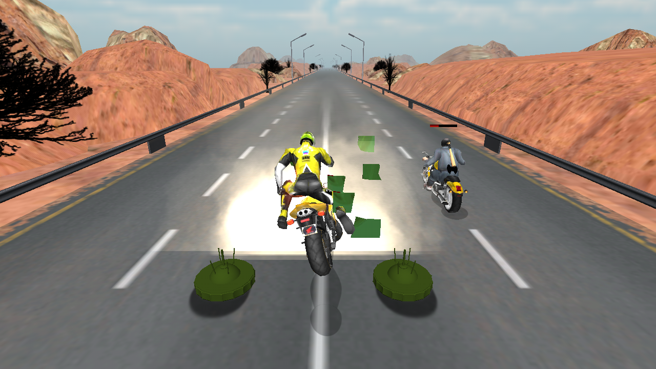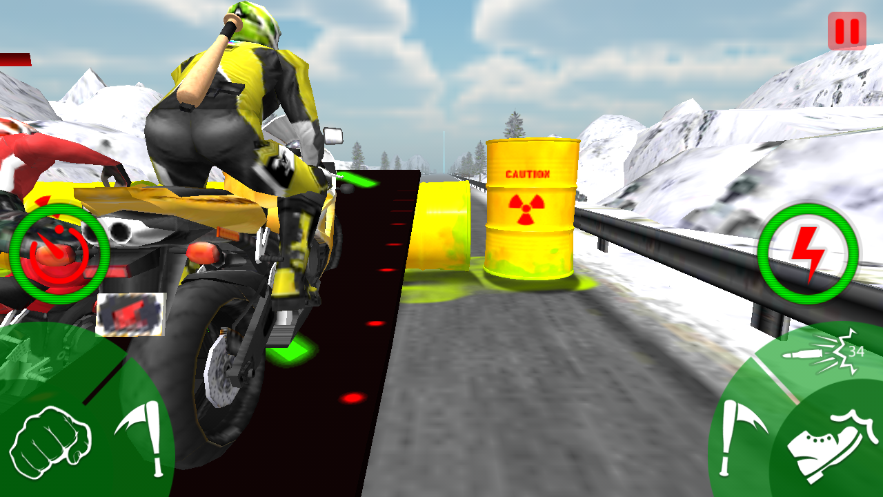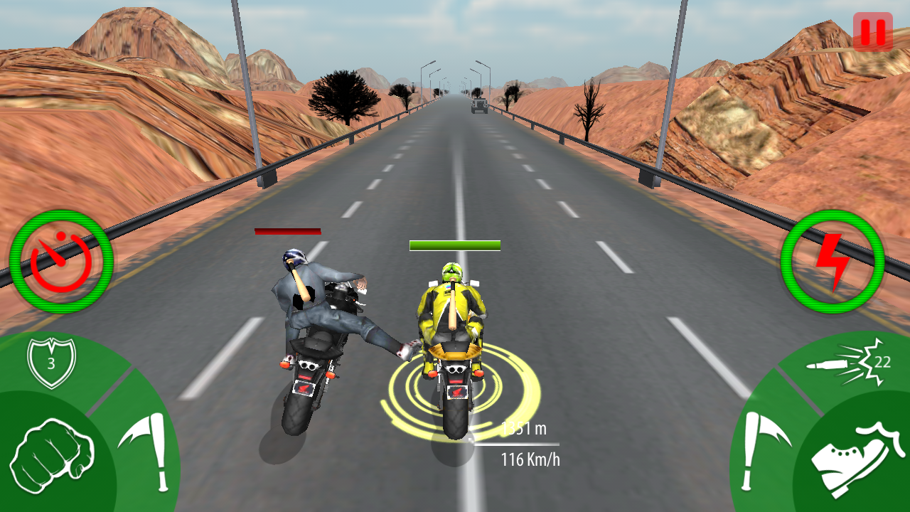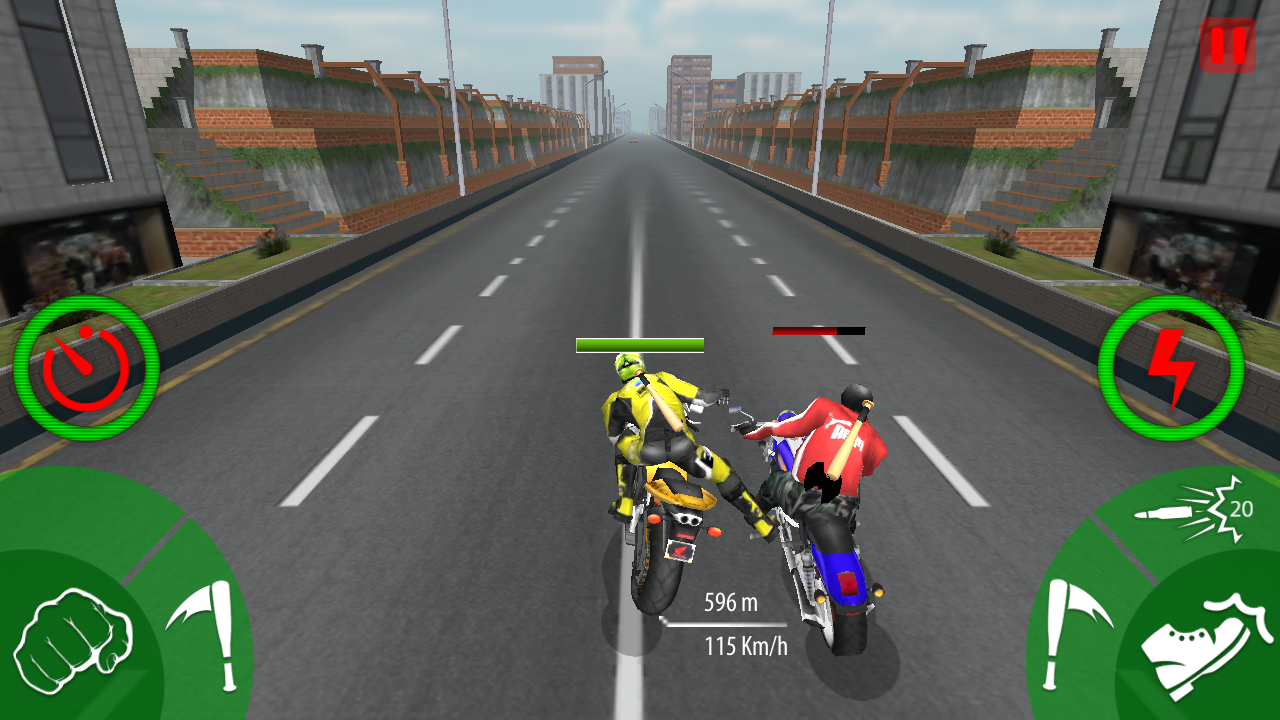 Traffic Moto Bike Attack Race — пользователь будет управлять мощным байком, несущимся по автомагистрали. В процессе заезда на пути игрока станут возникать разнообразные препятствия в виде другого автотранспорта, которые нужно объезжать. Также мешать поездке будут другие мотогонщики, способные сбросить водителя с байка. Со своей стороны геймеры также могут защищаться и атаковать соперников с помощью ударов руками, ногами, бейсбольной битой и даже выстрелами из огнестрельного оружия.