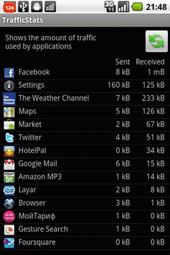 TrafficStats — программа для подсчета трафика различных программ (Android).