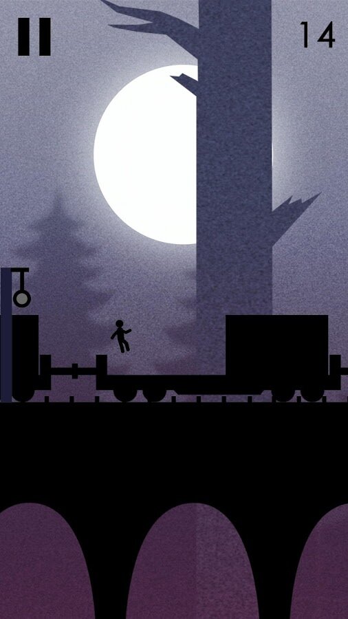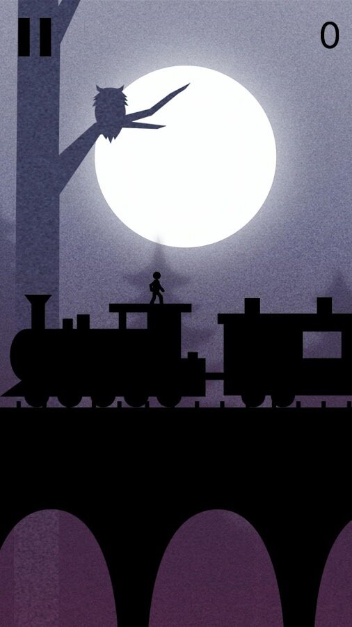 Главный герой, представленный черным силуэтом, бежит по крышам вагонов движущегося поезда. Зачем он это делает — неизвестно, но это и не важно для игры.