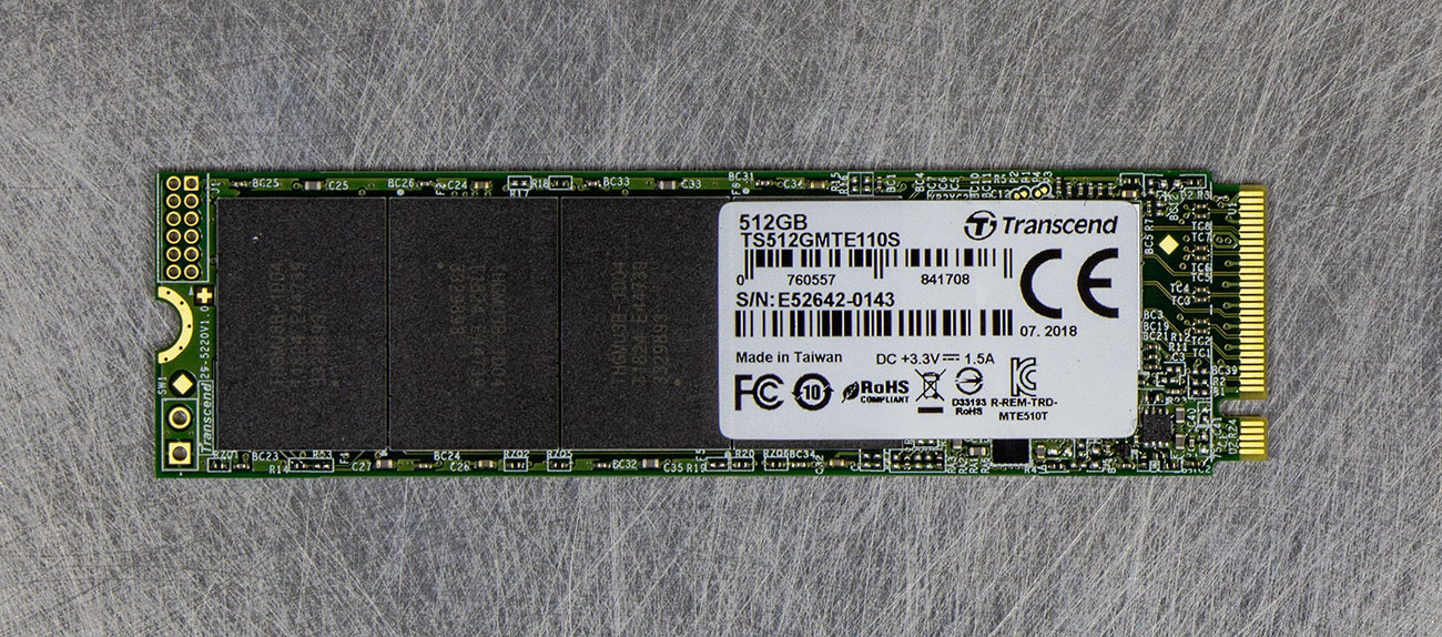 Эпоха становления твердотельных накопителей начиналась с 2,5'' дисков, которые общались с матплатой посредством SATA. Через некоторое время перешли на M.2 формат, потому что те же самые накопители получаются легче, компактнее и дешевле аналогов ноутбучного форм-фактора. Почти сразу уперлись в потолок SATA и перешли на PCI Express, благо он был «заложен» в M.2. На данный момент разных NVMe SSD предостаточно, но не все могут похвастаться низкой ценой — контроллеры и 3D память стоят немалых денег. Впрочем, при должном стремлении можно и в бюджетный сектор попасть, и скоростные характеристики выдержать на уровне. Пример тому — TS512GMTE110S от Transcend.