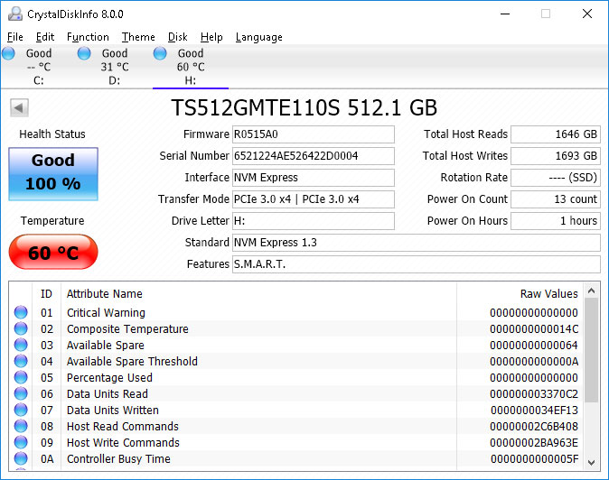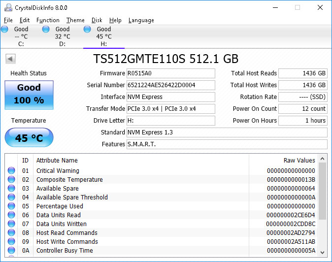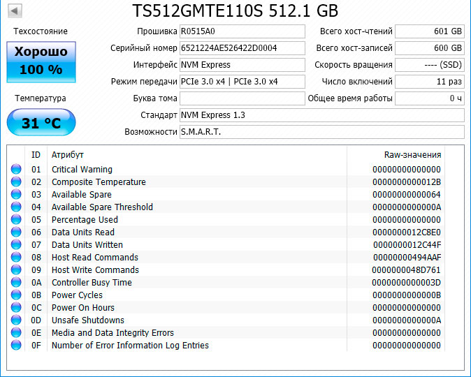 Transcend TS512GMTE110S со всех сторон хорош для системного накопителя при дефиците денежных средств – его можно найти менее чем за 7000 рублей. Он не такой быстрый и холодный, какой мог бы быть при использовании «собственного» буфера и радиатора, но первый недостаток трудно заметить без тестов, а второй устраняется за сотню рублей. В остальном SSD схож с прочими NVMe накопителями форм-фактора 2280: компактный, быстрый.